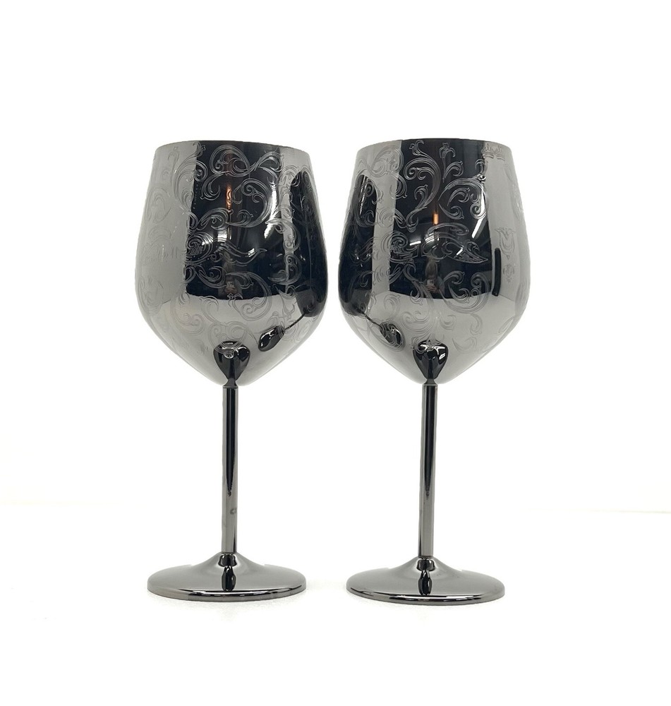 Enhance your wine-drinking experience with these elegant Sky Fish Royal Wine Cups. Crafted from premium stainless steel, these modern-style goblets come in a sleek black color with an etched pattern that adds a touch of sophistication to your table setting. The round shape and 8.25-inch height of each goblet make it easy to hold and enjoy your favorite red wine.