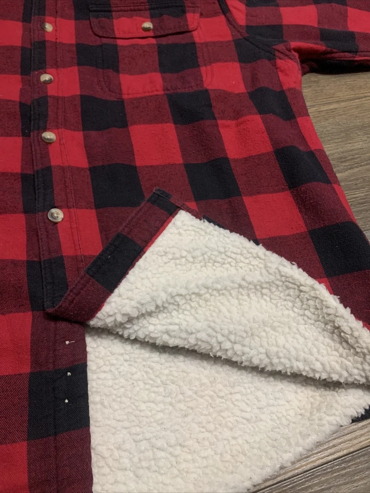Elevate your casual and workwear wardrobe with this Red Head men's flannel shirt. The shirt features a classic collared neckline and a button-front closure, made of a soft and comfortable polyester and cotton blend fabric. The shirt comes in a stylish red buffalo plaid pattern, perfect for the winter, fall, and spring seasons. This regular fit shirt is lined with sherpa, providing extra warmth and comfort. The shirt also includes accents and features such as buttons on the cuff and a point collar style. Whether you're going for a western, fish, outdoor, or sports look, this versatile shirt is a must-have addition to your wardrobe. Made in Bangladesh with a high-quality flannel product line, this shirt is perfect for any occasion.