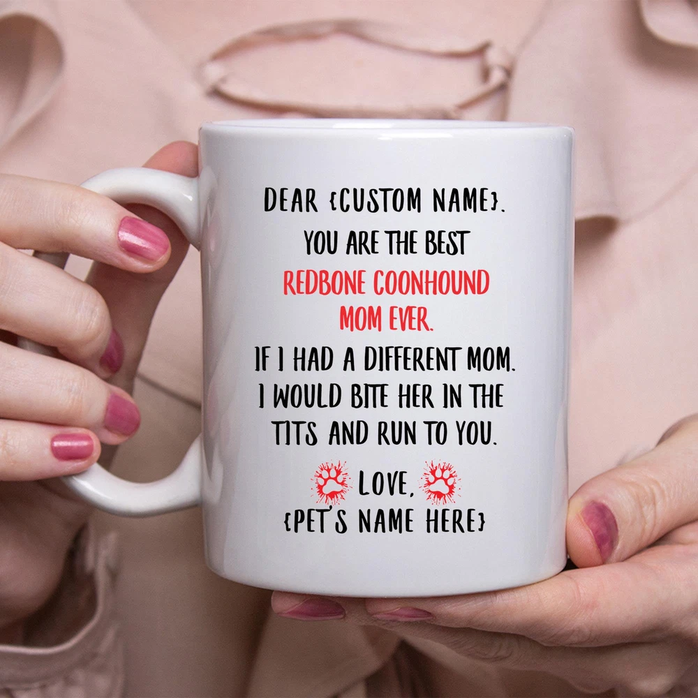 Redbone Coonhound Mom Gift Personalized Mothers Day Gift Mug Custom Name Gifts Product Details.. This high quality 11oz. ceramic white mug has a premium hard coat that provides crisp and vibrant color reproduction sure to last for years. Perfect for all hot & cold beverages. The highest quality printing possible is used. It will never fade no matter how many times you wash it. Material: 100% Ceramic. Print both sides. Dishwasher and Microwave Safe. High Gloss + Premium White Finish. Printed in the U.S.A. Personalized & Custom. We support personalized and custom mug to add custom, when placing an order, you can add notes to the "order note" in shipping address section. Also you can contact us directly via message. Shipping Info. Ready to ship in 1 to 2 business days, All products are made-to-order and proudly printed in the United States. Shipped by USPS and DHL, You will receive your order in 5-7 days. Replace & Refund. All products are defective during shipping broken, chipped will be replaced free of charge. You are not satisfied with the product, we will refund 100% money to you. If any other issues arise, please do not hesitate to message, we would be more than happy to assist you.