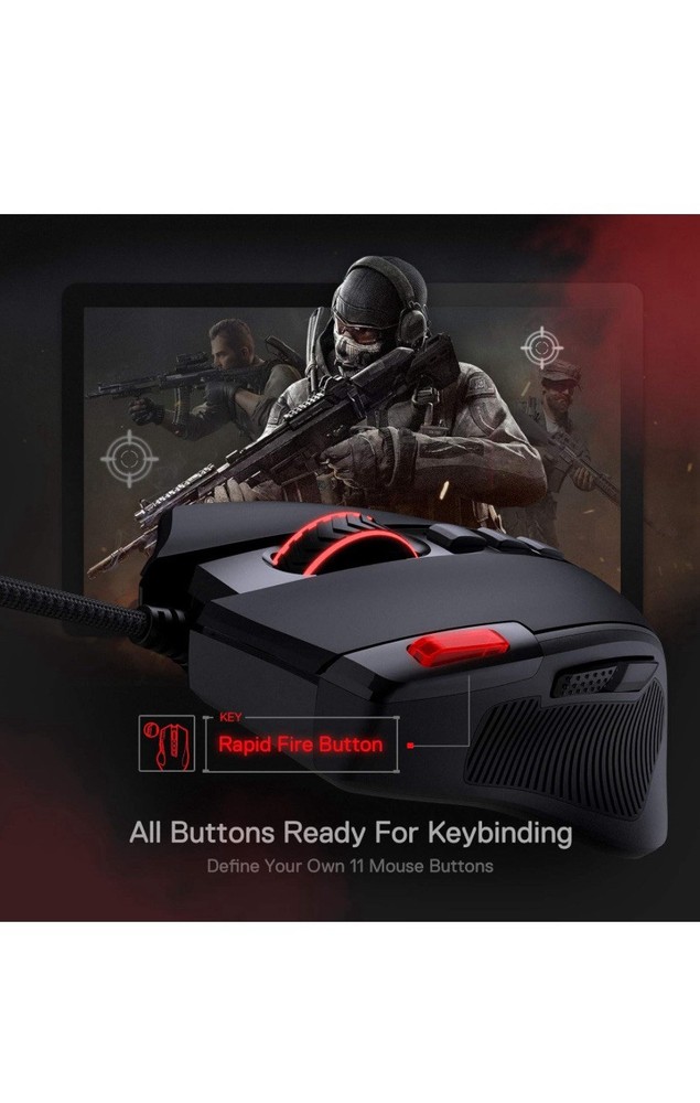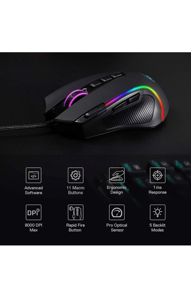 Product Dimensions:5 x 3 x 0.04 inchesCountry of Origin:ChinaTracking Method:OpticalItem Weight:5.1 ouncesMovement Detection Technology:OpticalStyle:WiredBrand:RedragonConnectivity:Wired, USBConnectivity Technology:USBCountry/Region of Manufacture:ChinaFeatures:Adjustable DPI, Ergonomic, LED Lighting, Programmable ButtonsColor:BlackMaximum DPI:8000Special Feature:Rapid Fire Key, Comfort Grip, Macro KeysType:Does not applyItem model number:M612-RGBManufacturer:Redragon