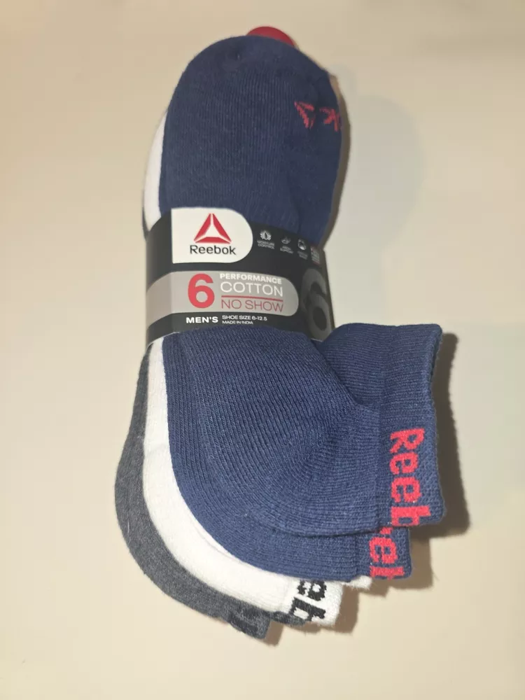 The Reebok 6-Pack Performance Cotton No Show Socks for men come in sizes 6-12.5 with a navy assorted color scheme. Made of polyester, spandex, and cotton, these athletic socks feature cushioning and moisture-wicking properties. Suitable for casual, formal, or business occasions, they are ideal for activities like gym training, walking, cycling, cross-training, and hiking in summer, fall, and spring seasons.