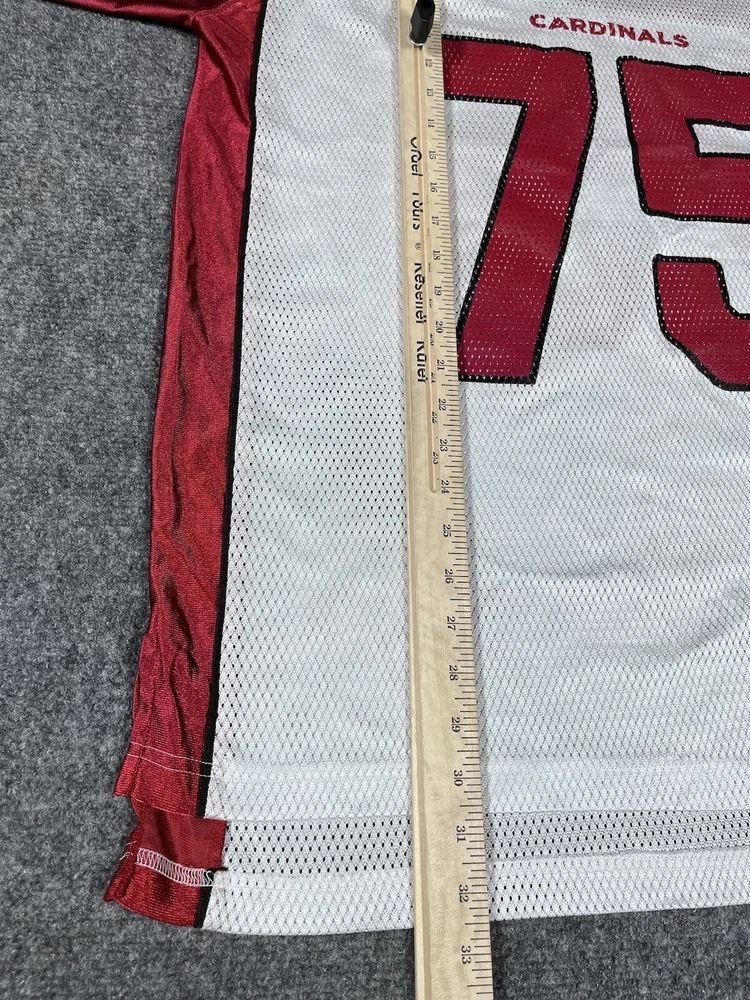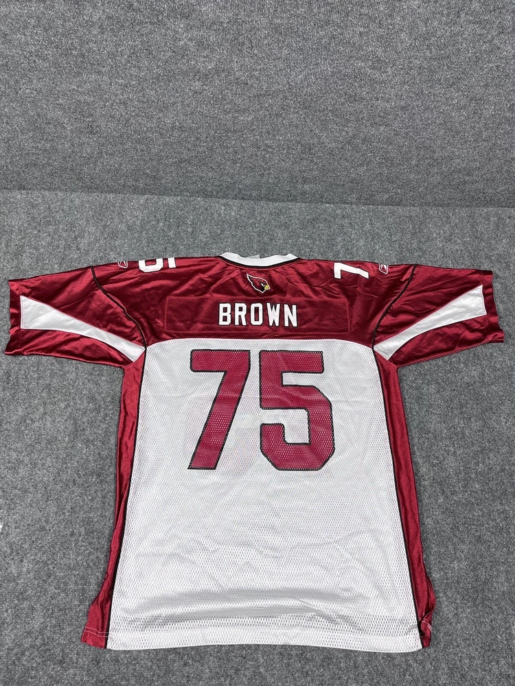 Show your support for the Arizona Cardinals with this Reebok football jersey featuring #75 Levi Brown's name and number. Made for men and available in size L, this jersey is perfect for any fan of the National Football League (NFL). The brown color and Arizona Cardinals team logo make it a great addition to your fan apparel and souvenirs collection. Whether you're cheering on the Cardinals during the regular season or just showing your love for the sport of football, this jersey is a must-have.