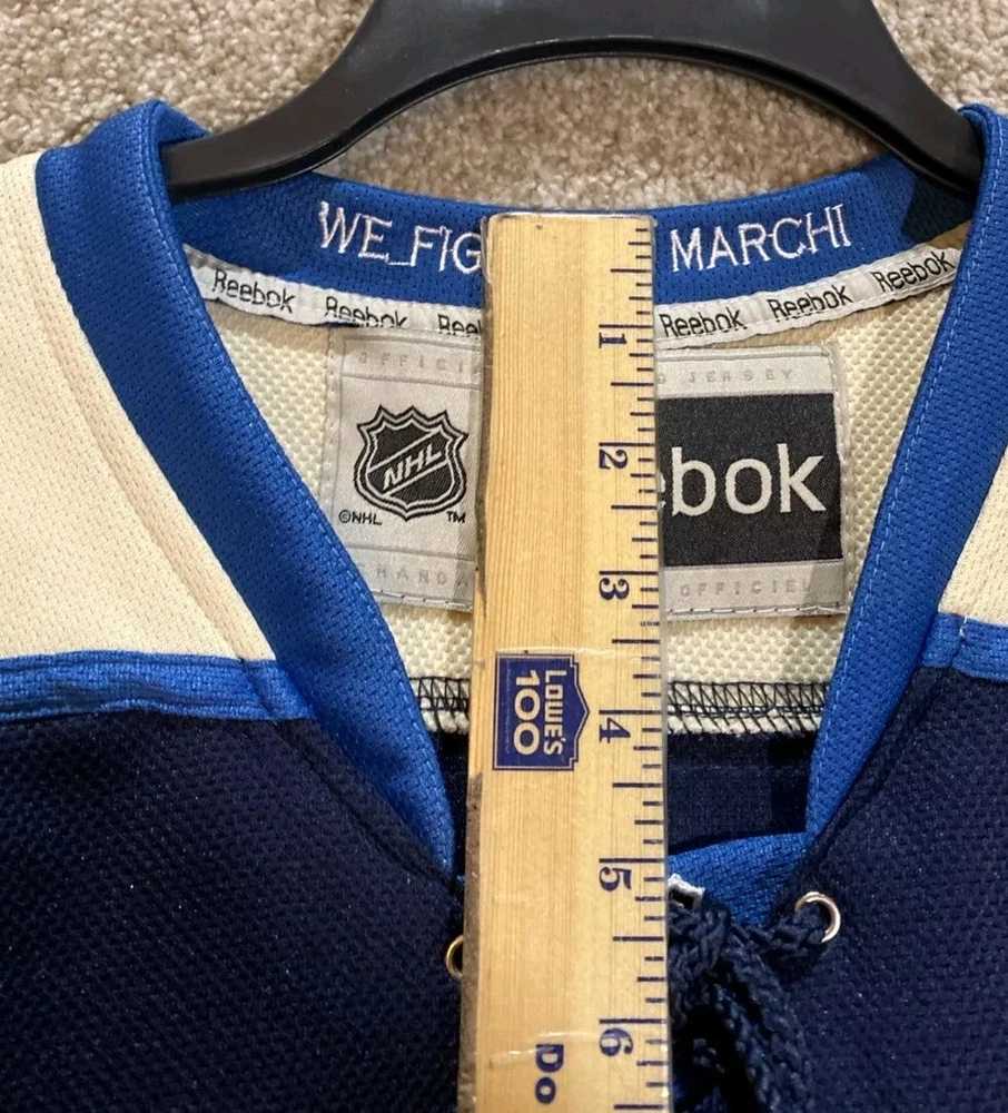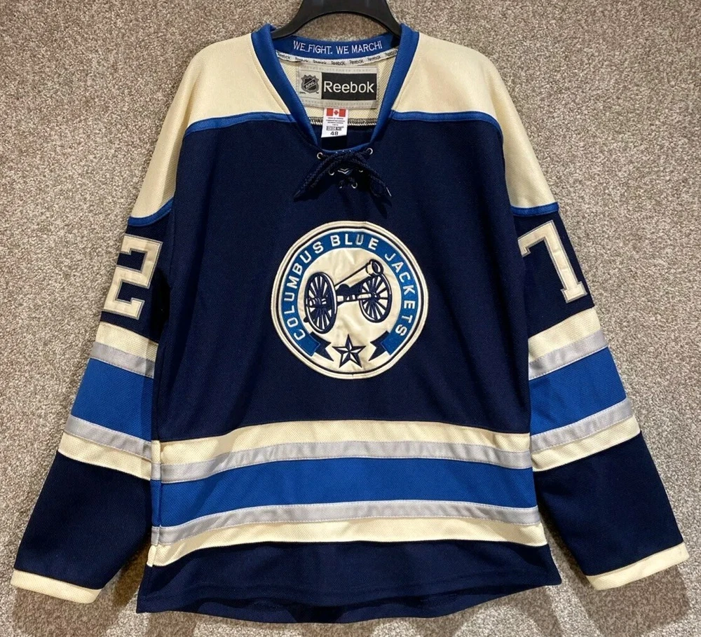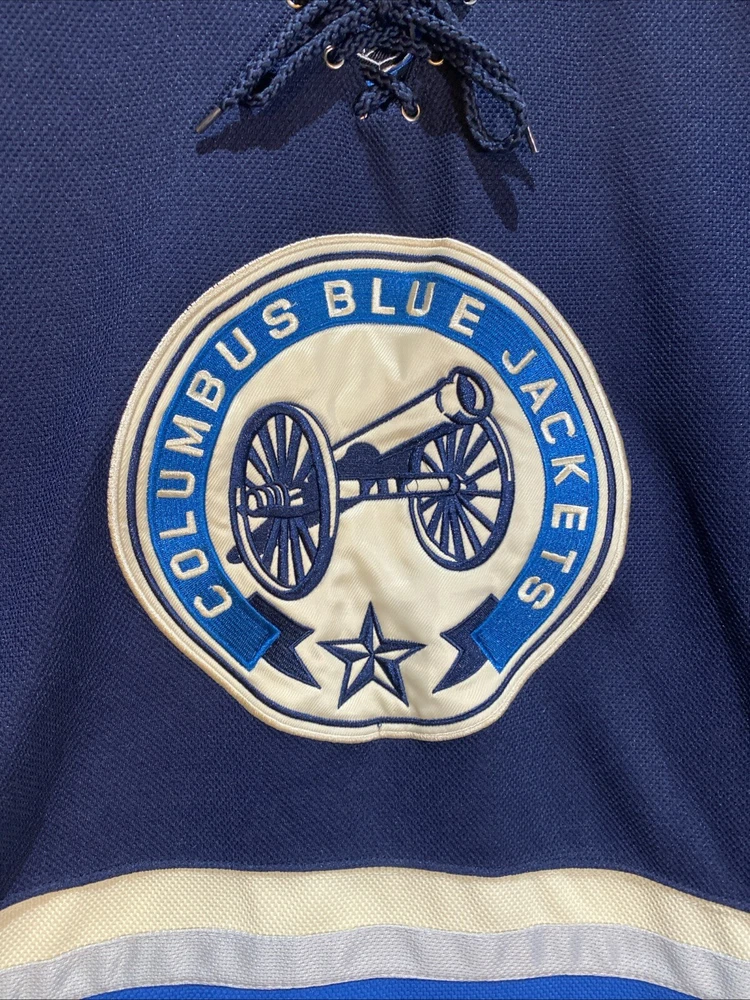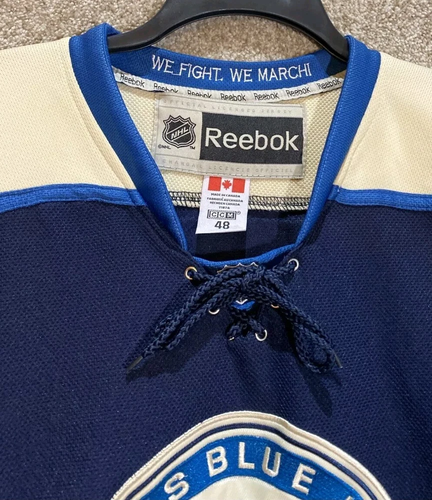 Seller Notes:“Small stain on 7 on back shown in the photos.”Gender:MenColor:BlueSport:HockeySize:48Team:Columbus Blue JacketsOfficially Licensed:YesBrand:ReebokLeague:National Hockey League (NHL)Country/Region of Manufacture:CanadaProduct:JacketPre & Post Season:Regular Season