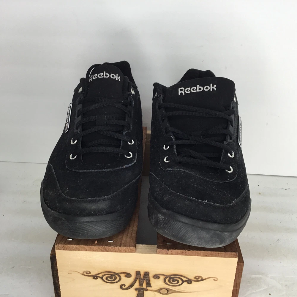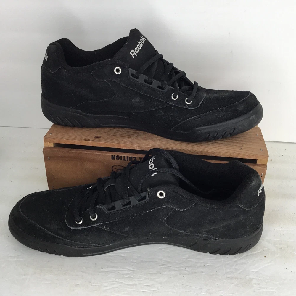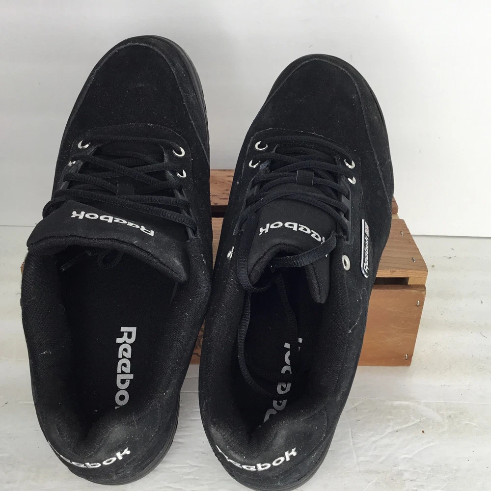 This product is a pair of Reebok Classic Suede Leather Sneakers in size 11 for men. The sneakers are black in color and feature a classic style with a leather upper material. They are designed in a sneaker style and are part of the Reebok Classics product line, making them a timeless and stylish choice for casual wear. Perfect for those looking for a classic athletic shoe with a touch of elegance and sophistication. Thank you for shopping my store. All of our photos are taken in house. We do not use stock images. What you see in the picture is the exact item you will receive. Used products may have some wear and marks due to age and usage. Shipping, Returns and Feedback Shipping cost: We try and keep shipping costs down. If there are ever any special requests for shipping, please let us know before or when you pay. We DO combine shipping. Return Policy: Returns Accepted! If you change your mind - Full Refund - Shipping. If it is damaged or not as described - Complete Refund. BUY WITH CONFIDENCE! Feedback: We always leave you positive feedback. Please leave us positive feedback if you are satisfied. We are a small family business and feed back helps us grow. If you are unsatisfied please contact us before leaving negative feedback. We always fix our mistakes! Thank you for shopping my store. All of our photos are taken in house. We do not use stock images. What you see in the picture is the exact item you will receive. Used products may have some wear and marks due to age and usage. Shipping, Returns and Feedback Shipping cost: We try and keep shipping costs down. If there are ever any special requests for shipping, please let us know before or when you pay. We DO combine shipping