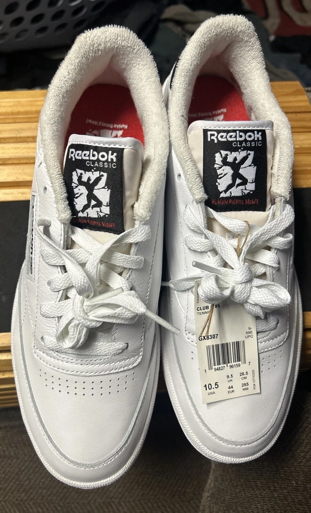 Reebok Club C 85 'Human Rights Now!' Sneakers | White/Chalk/ Red / Green 10.5