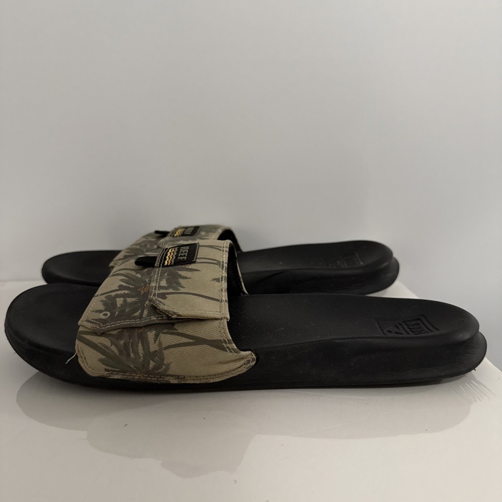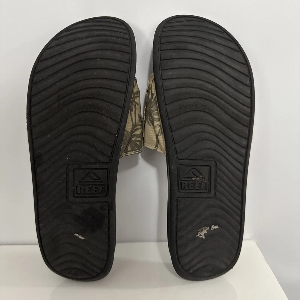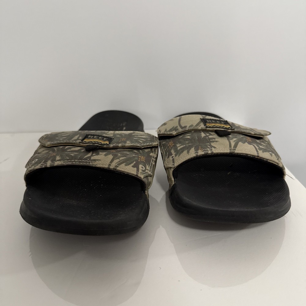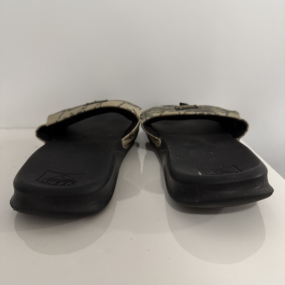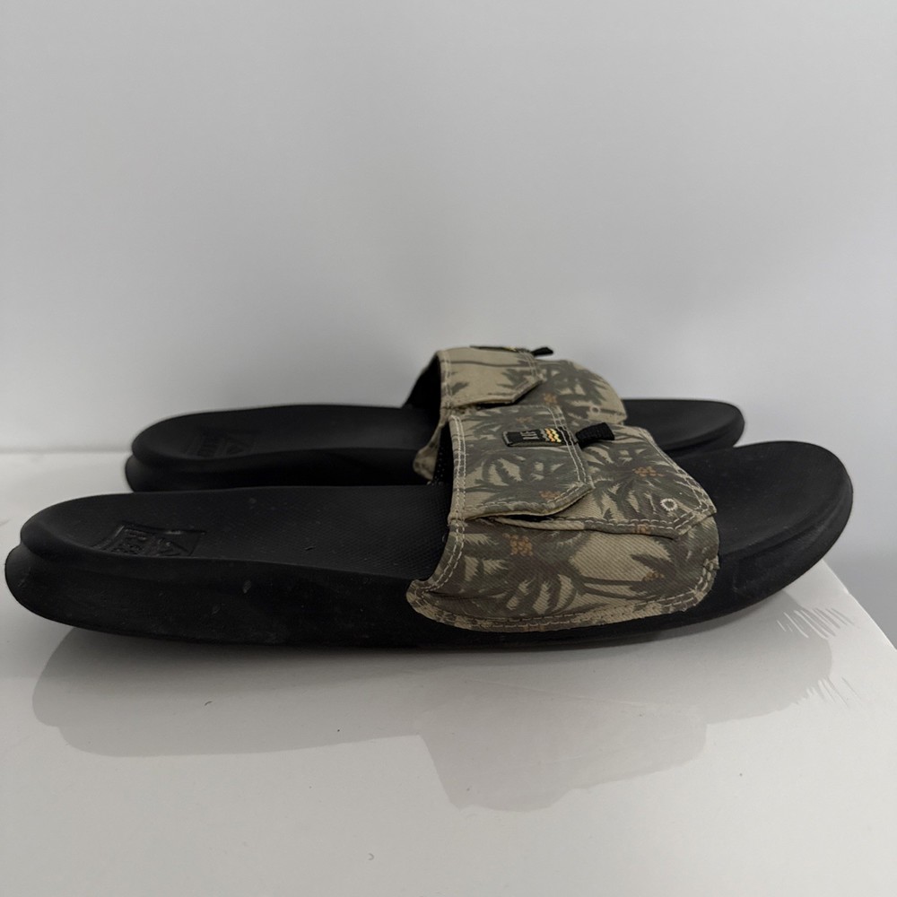 The Reef Stash Hawaiian Palm Tree Slides are a stylish and comfortable sandal option for men in size 11. The slip-on design with a padded upper and hidden pocket adds convenience and practicality to the Hawaiian tropical-themed slides. The black color and synthetic material make them versatile for various casual outfits, while the Hawaiian theme adds a touch of laid-back style to your ensemble. Perfect for a beach day or a casual outing, these Reef Stash slides are a must-have addition to any summer wardrobe.