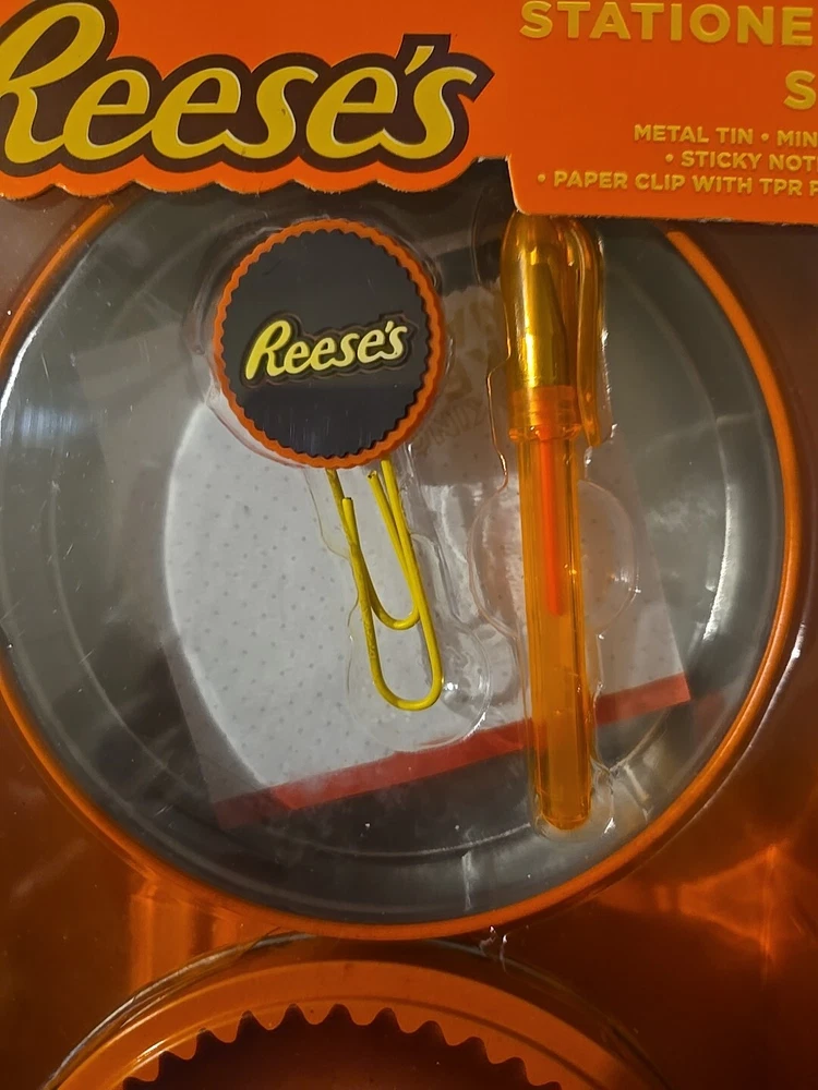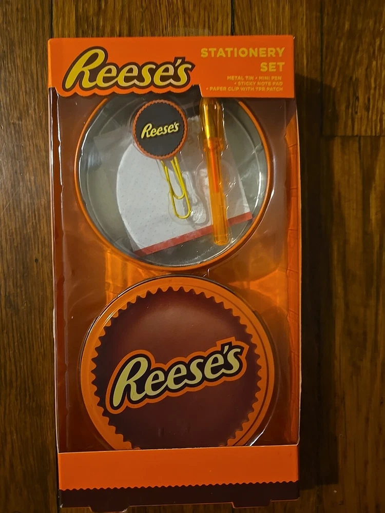 This Reese's Stationery Set includes a variety of paper products such as notebooks, pens, and sticky notes, all featuring the iconic Reese's branding. Perfect for fans of the popular peanut butter cup candy, this set is great for writing, organizing, and showing off your love for Reese's.