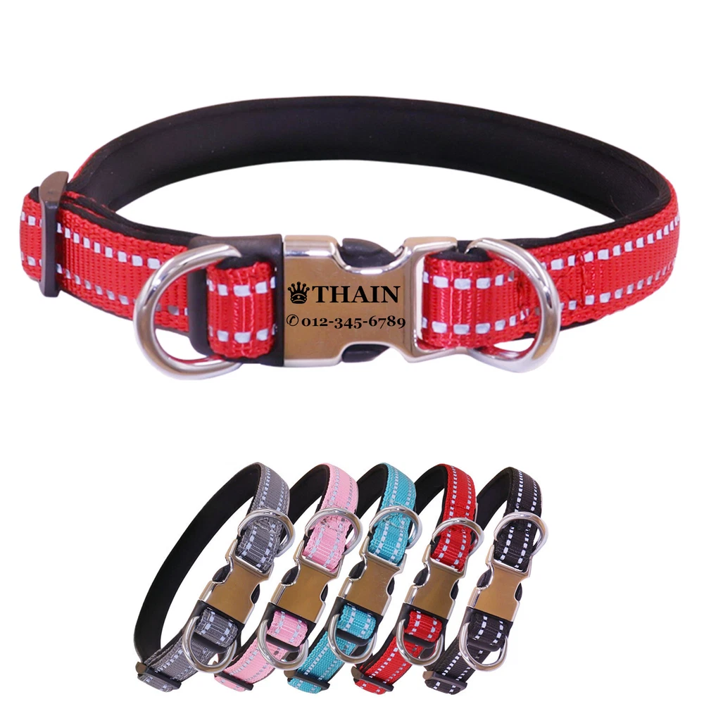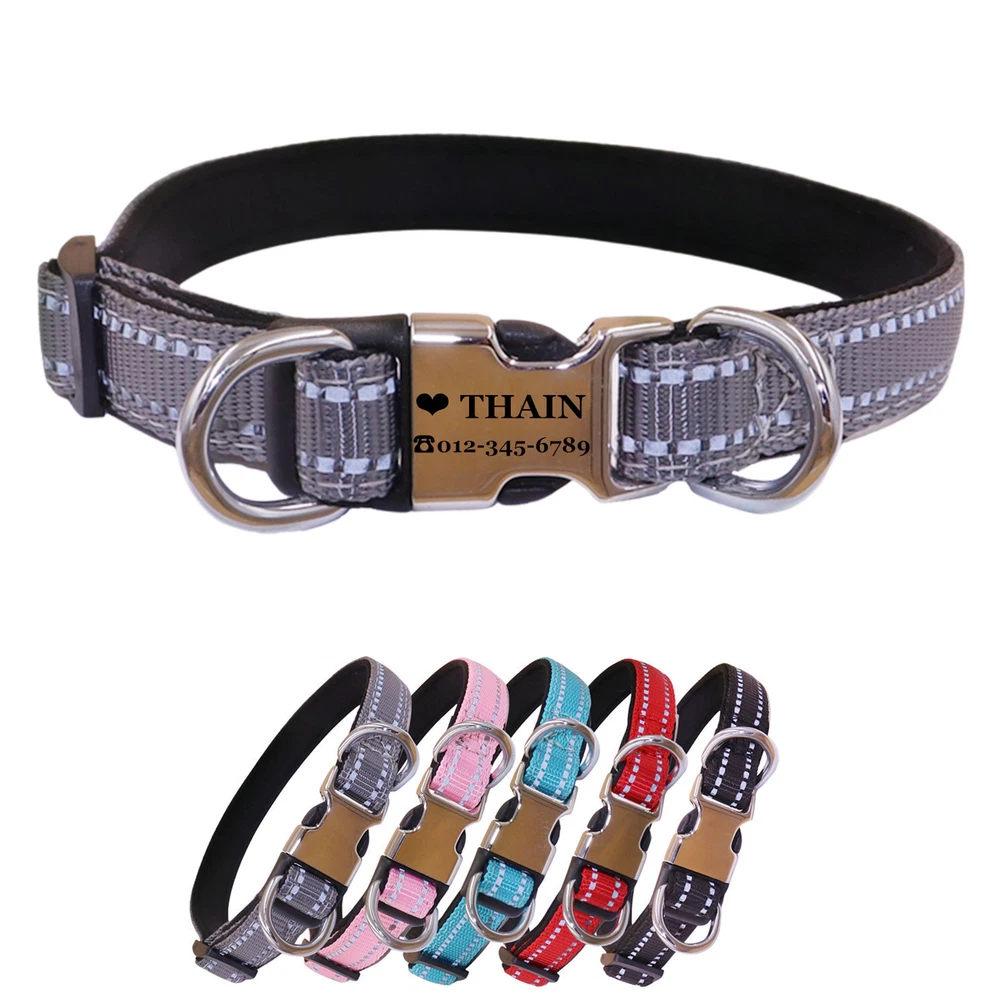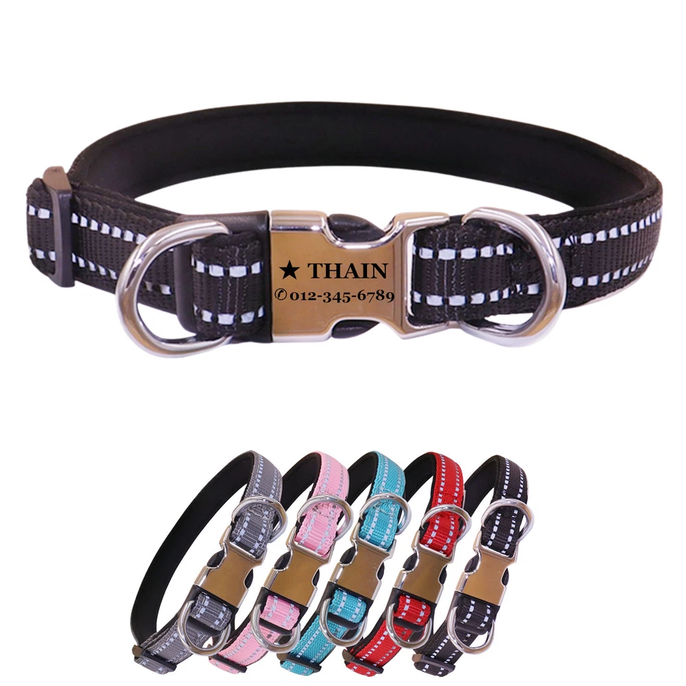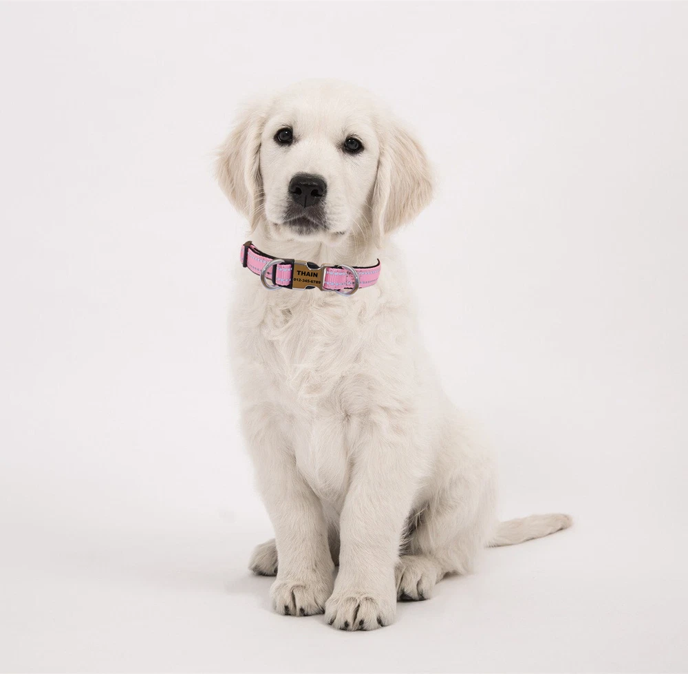 Reflective Personalized Nylon dog collar engraved Buckle Name Number ID Tag