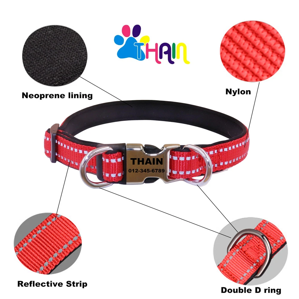 Material: Nylon Custom Bundle: No Type: Standard Dog Collar Country/Region of Manufacture: China Gender: Unisex Dog Breed: All dogs Brand: THAIN Personalized: Yes Personalize: Yes Features: Personalized