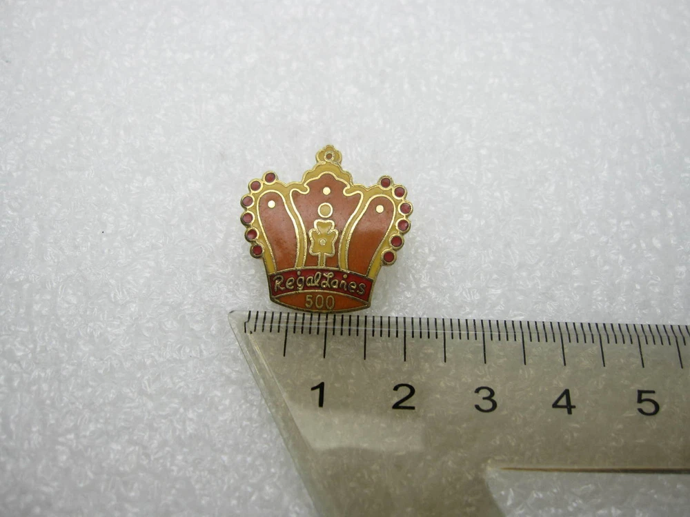 Regal Lanes 500 Orange Crown Lapel Pin (A206) . I do offer combine shipping in all my items but in lapel pin category, the total shipping cost will be $4.49 regardless how many lapel pin you purchase. For more information, please contact me (seller)