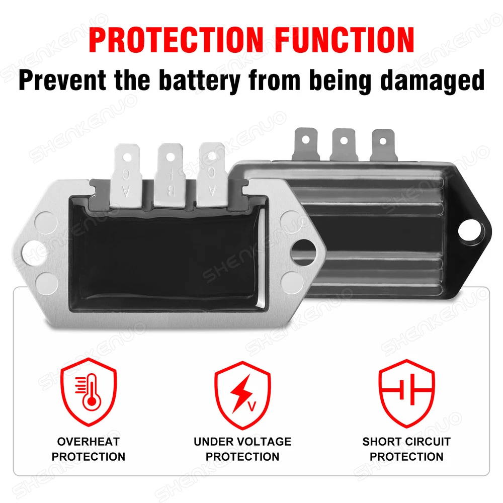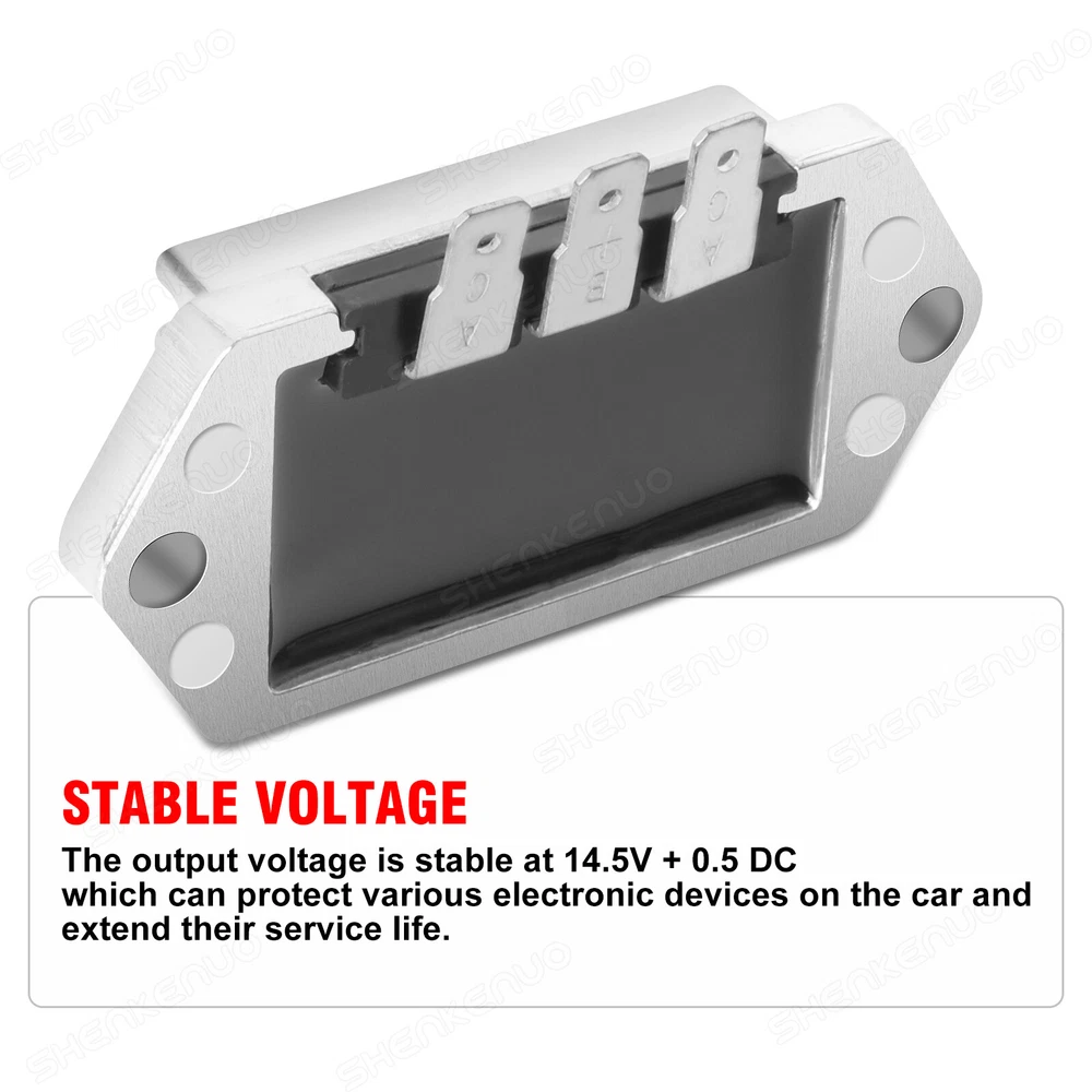 Item description from the seller Accessory Information:Voltage regulator rectifier fits 8-25 hp engines with 15 amp alternator. Row has 3 terminals,AC,B+,AC.Output voltage 14.5±0.5V Replacement Part Number:4140309 2575503S 4140305 25 403 03 / 25 403 03-S / 25 755 03 / 25 755 03-S / 41 403 03 / 41 403 04 / 41 403 03-S / 41 403 05 / 41 403 06 / 41 403 06-S / 41 403 08 / 41 403 08-s / 41 403 09 - s / 41 403 10 / 41 403 10-s. High quality:Aluminum housing and heat dissipation silicone ensure heat dissipation and even export of electronic components, prolonging the life of the rectifier. Protection Function:The rectifier has a battery charging protection function. When the battery power is 100%, the rectifier stops charging to prevent the battery from overcharging. Stable voltage: The output voltage is stabilized at DC 14.5V±0.5, which can protect all kinds of electronic devices in the car and prolong their service life. Fitment : For CPohn Deere MIA11665 For John Deere AM106357 For John Deere AM34738 For John Deere AM102596 For Kohler 41-403-09-S For Kohler 41-403-04 For Kohler 25-755-03-S For Kohler 234279 For Kohler 41-403-09 For Kohler 41-403-05 For Kohler 41-403-01 For Kohler 41-403-10-S Packing list : 1 x Voltage Regulator Rectifier