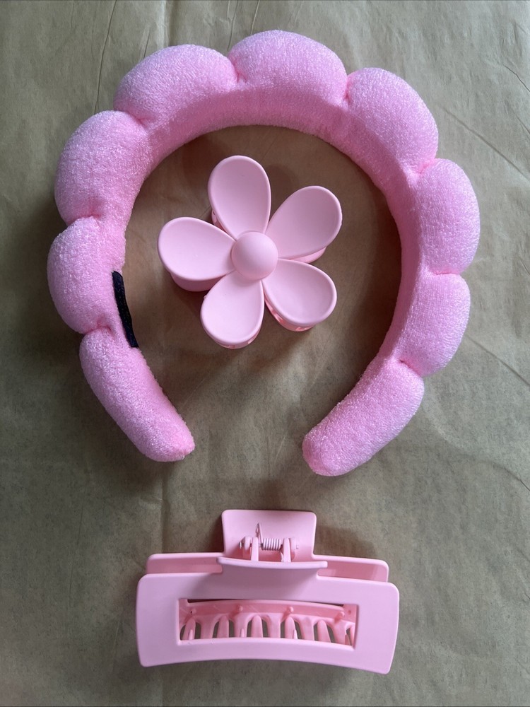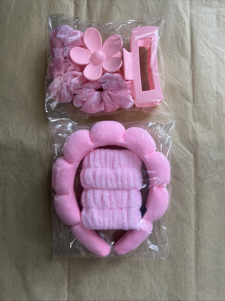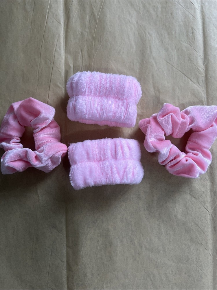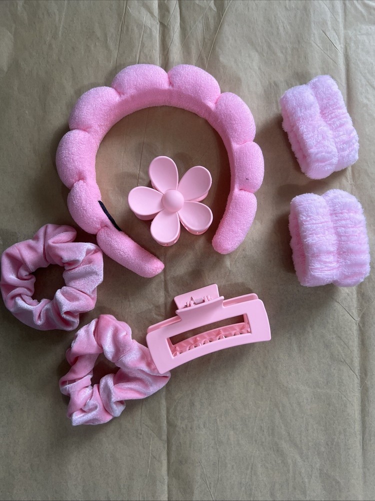 Pink headband with wristbands and hair accessories lot .