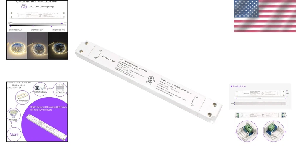Reliable 36W Dimmable LED Transformer for Lutron & Leviton Dimmer Compatibility ‹ › ‹ › ‹ › ‹ › ‹ › ‹ › ‹ › ‹ › ‹ › ‹ › Reliable 36W Dimmable LED Transformer Compatibility: Designed for seamless integration with popular dimmers including Lutron and Leviton. CONVERTS: 120V AC to 12V DC, perfect for a variety of advanced low voltage lighting projects. UNIVERSAL COMPATIBILITY: Works seamlessly with Forward Phase, Reverse Phase, Triac, MLV, and ELV dimmers. Benefits: SMOOTH DIMMING: Achieve a flicker-free dimming experience from 0 to 100%, allowing you to set the perfect ambiance for any room. SAFETY PROTECTION: Equipped with short circuit, overload, and over temperature protection to ensure reliable performance and project safety. USER-FRIENDLY: Screw terminal connections make installation quick and easy, adhering to the electrical code and facilitating straightforward setups. ASSURED QUALITY: UL Listed, Class 2 rated; proudly backed by a generous 2-year warranty. EXCEPTIONAL SUPPORT: Contact our US-based customer service team for hassle-free troubleshooting and installation questions. Specifications: INPUT: 100-277V AC, 0.55A max, 50/60Hz λ=0.95 OUTPUT: 12V DC, 3A, 36W max Efficiency: >80%, Power Factor: >0.99 IP20 Rated: Ideal for indoor use in dry or damp locations. Why Choose Our Dimmable LED Transformer? Elevate your indoor lighting experience with our Reliable 36W Dimmable LED Transformer. With its exceptional compatibility, robust safety features, and smooth dimming capabilities, this transformer is not just a component, but a gateway to creating your desired ambiance. Enjoy peace of mind knowing that your projects are backed by a manufacturer with a commitment to quality and customer satisfaction. Transform your space effortlessly—order your Reliable 36W Dimmable LED Transformer today! Shipping Free & Fast Shipping - We offer free shipping to most of the USA with a normal delivery time of 3-7 days. However, due to the current situation, additional delivery time (up to 3 weeks) may be required for some items. Alternative Carriers - We may use alternative carriers (e.g. USPS, FedEx, UPS, etc.) to ensure your package arrives safely and on time. Due to the use of multiple carriers, we are unable to provide a tracking number automatically. Handling Time - Orders are processed and shipped within 1-2 business days of receiving cleared payment. Shipping Restrictions - Shipping to Alaska, Hawaii, Puerto Rico, Guam, and other US territories may incur shipping charges or delivery restrictions. Please contact us before ordering, or your order can be refunded/cancelled. State Restrictions - There may be restrictions based on your state of purchase. For example, certain items may not be shipped to California due to state regulations. Contact for Tracking Updates - If you require tracking updates or have any concerns about the delivery of your order, please feel free to contact us, and we will be happy to assist you. Return 30-Day Hassle-Free Returns - We want you to be completely satisfied with your purchase. If you are not, you can return the item within 30 days of receiving it for a full refund or exchange. Easy Return Process - To start a return, simply contact us and we will provide you with a prepaid return shipping label and detailed instructions. Restocking Fee - There are no restocking fees for returns. However, the buyer is responsible for return shipping costs if the return is not due to a seller's error. Refund Processing Time - Refunds will be processed within 5 business days of receiving the returned item in its original condition. Payment We accept all major credit cards, PayPal, and Apple Pay for your convenience. Your payment information is secure and encrypted to ensure a safe and seamless transaction. Please complete your payment within 3 days of purchase to avoid any delays in shipping. Feedback Your feedback is extremely important to us. We strive to provide the best products and customer service possible. If you are satisfied with your purchase, please take a moment to leave us a positive review. If you have any concerns or issues with your order, please contact us before leaving negative feedback. We are committed to resolving any problems and ensuring your satisfaction. Contact Us If you have any questions or concerns, please feel free to reach out to our customer support team. You can contact us through the eBay messaging system. We are available Monday to Friday, 9:00 am to 5:00 pm EST, and we will do our best to respond to your inquiry within 24 hours. Buy it now and enjoy a pleasant shopping experience! UPC: Not Set Item Diameter: 10.35 x 1.26 x 0.87 inches Item Height: Not Set Item Length: Not Set Item Weight: 8.15 ounces Item Width: Not Set Product Line: Not Set Unit Quantity: 1 Features: Dimmable,Smooth dimming from 0 to 100%,Short circuit protection,Overload protection,Over temperature protection,Screw terminal connections,Easy installation Material: Plastic Department: Adults Smart Home Protocol: Not Set Smart Home Compatibility: Lutron Leviton,Lutron,Leviton Labels & Certifications: Not Set Brand: Unbranded Type: Power Supply Lighting Technology: LED Number in Pack: 1 Current Type: AC Connectors: Screw Voltage: 100-277 V Output Voltage: 12 V Amperage: 3 A Bulb Shape Code: Not Set Power: 36 W Color: Not Set Power Source: AC Compatible Product: Not Set MPN: Not Set Model: Not Set Bulb Wattage: Not Set Power Consumption: 36 W Installation Area: Indoor IP Rating: IP20 Style: Not Set LED Chip Code: Not Set Pattern: Not Set Year Manufactured: Not Set Country/Region of Manufacture: Not Set LED String/Strip Type: Not Set Manufacturer Warranty: Not Set Compatible Brand: Not Set Compatible Model: Not Set Unit Type: oz Personalized: Not Set