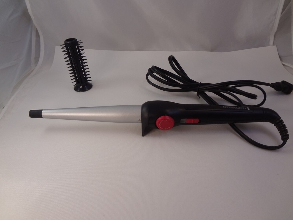 *** Very Clean And In Good Condition *** Remington 1/2" - 1" Ceramic Technology Tapered Wand Curling Iron ~ Black & Silver With Pink Accents ~ Swivel Cord 30-Heat Settings Dial ~ On/Off Switch Model: CI-52W1 ~ Gently Used, Excellent Condition ~ Works Great! This item has been cleaned & disinfected!