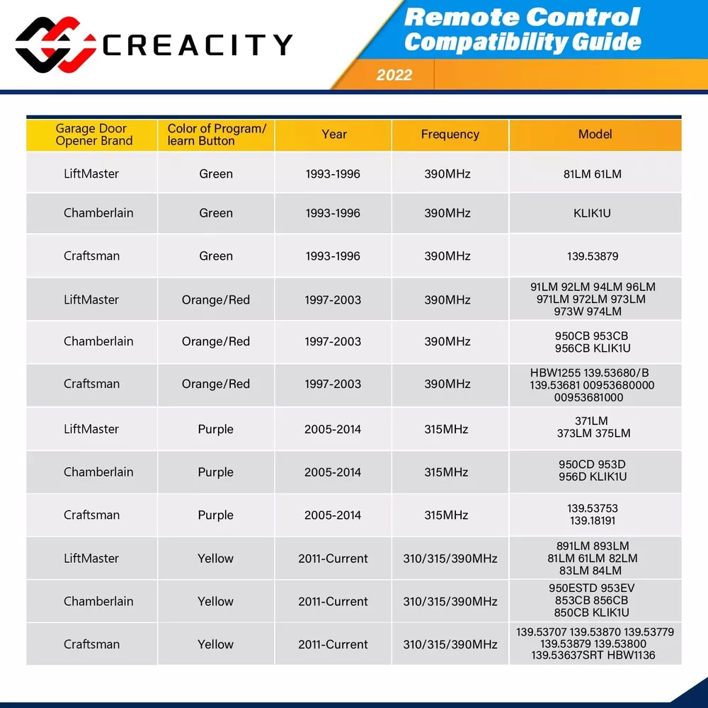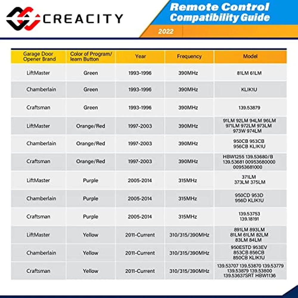 About this item Universal Compatibility - 893LM liftmaster remote is compatible with LiftMaster/Chamberlain/Craftsman garage door openers manufactured from 1993 to current, including Security + 2.0(Yellow Learn Button), 315 MHz Security + (Purple Learn Button), 390 MHz Security + (Red or Orange learn button, 390 MHz Billion Code (Green Learn Button). Upgraded design: Liftmaster 893LM remote garage door opener have further remote control coverage, stronger signal transmission, working distance up to 100 feet. Convenient and versatile, it is your must-have garage remote control alternative. Easy to Program: 893LM remote liftmaster can replace 81LM, 371LM, 971LM, 891LM, 890MAX Remote Control Transmitter. A detailed user manual is included to help you get set up in minutes. TIPS: Make sure your garage door opener is fully closed before starting remote programming. High-quality after-sales service: Our products provide a one-year warranty service, no matter for any reason you are not satisfied, please write to us, we will provide you with timely service. Note: Accessories are compatible spares (non-original), the above brand names and any related model names are only used to demonstrate compatibility. Universal 893LM liftmaster remote. Battery Includes. Visor Clip-1Pack contain:1 Pack remote with visor clip Visor Clip-2Pack contain: 2 Pack remote with visor clips Visor Clip-3Pack contain: 3 Pack remote with visor clips Only clip- 3Pack: 3 Pack Stainless Steal Remote Visor Clip