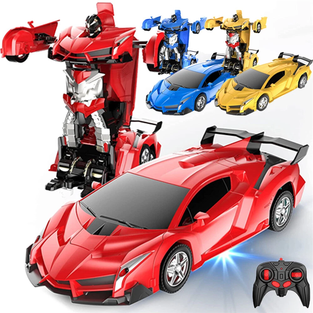 Feature: One-Button Deformation:This remote control robot car is 2-in-1 model car toy, and can be changed from car to robot with one button click, which transforms back and forth easily to have a great fun 360° Rotation & One-Click Demo:With a flexible drifting wheel on the bottom , this robot racing car can finish 360 degree rotation in both car and robot model flexibly, and kids can enjoy great fun with auto demo function. Robust 2.4G Remote Control: With strong 2.4Ghz trans mitter system, kids can easily control the robot car toy within 45 meters, and this RC model car is simple to operate for children with controller, forward, backward, turn right, turn left, one button deformation and one click auto demo High-quality Materials:This deformation robot car for kids is made of sturdy and non-toxic ABS plastic material, which is collision resistant and environmental-friendly, ensuing your kids have a lasting and happy entertainment Perfect Gift for Kids:With aerodynamic design and scratch-resistant materials, this gift toy car is easy to operate and ideal for kids’ birthday, Christmas or other festivals. Package Includes: 1x Remote Control Robot 1x Remote Control 1x 3 batteries 1x Battery charger