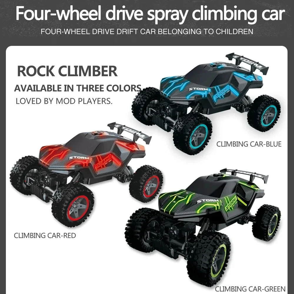 Remote Control Car 1:16 scale Kids RC Car All Terrain 4WD Off-Road RC Truck 2.4G free shipping!!! Product Description: This 1:16 scale wireless remote control car is designed for boys and offers hours of fun both indoors and outdoors. Featuring a cool style and bright colors , the car is perfect for various play environments, including smooth indoor surfaces and rugged outdoor terrain. The car is equipped with a 2.4GHz wireless control system , which ensures interference-free operation, similar to a gaming experience. It offers smooth, responsive control for forward, backward, left, and right movement , as well as exciting features like a one-button spray function and five light modes . The car’s design allows it to perform both horizontal rides and off-road mountain climbing , making it versatile for different types of play. Whether you're navigating flat surfaces or taking on rocky paths, this RC car delivers an exciting and dynamic experience, while the light spray function adds an extra layer of fun. Key Features: 1:16 Scale: Perfect size for both indoor and outdoor play. 2.4GHz Wireless Control: Provides interference-free, long-range control for smooth operation. Light Spray Feature: One-button spray function for added visual effects during play. Five Light Modes: Switch between different light settings for a customizable look. All-Terrain Capabilities: Suitable for both horizontal riding and off-road mountain climbing . Bright Colors & Cool Style: Eye-catching design that adds to the excitement of play. Durable Plastic Material: Built to withstand rough play, both indoors and outdoors. Specifications: Material: Plastic Size: 1:16 scale Control System: 2.4GHz wireless remote control Battery: Rechargeable lithium battery (included) Charging Method: USB cable (included) Functions: Forward, backward, left, right, spray function, and light modes Remote Control Range: Long-distance, interference-free signal Package Size: 285 190 175 mm Package Includes: 1 x Remote control car 1 x Remote control 1 x USB charging cable 1 x Lithium battery 1 x Screwdriver 1 x Manual 1 x Irrigation equipment (for spray function) Perfect For: Boys and Young Enthusiasts: Engaging and fun for kids who love RC cars and outdoor adventures. Indoor and Outdoor Play: Great for various environments, including smooth floors and rugged outdoor paths. Developing Hand-Eye Coordination: Helps improve motor skills while enjoying exciting gameplay. The 1:16 Wireless RC Car is perfect for off-road adventures, providing hours of entertainment with its light spray effects, all-terrain capabilities, and cool design