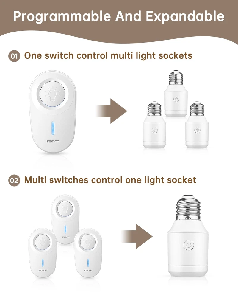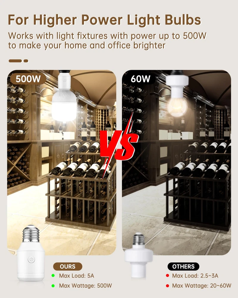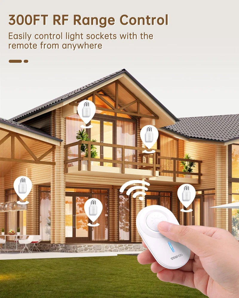 Store New Arrivals Add to Favorite View Feedback Contact Remote Control Light Socket E26/E27 Bulb Base Holder, Wireless Light Switch for Pull Chain Light Fixtures, 300FT RF Range, No Wiring Wireless Light Switch for 500W Light Fixtures Description Wattage 500 watts Material Polycarbonate (PC) Country of Origin China Package Dimensions 4.65 x 3.43 x 1.85 inches; 3.84 ounces Batteries 1 Lithium Metal batteries required. (included) Base Type Medium 【 Wireless Remote Control 】This remote control light socket allows you to pull chain light fixtures and traditional light switches. It can be easily installed by sticking wall switches, allowing you to easily control indoor lighting equipment remotely. 【300 FT RF range】Strong RF signal works through walls and doors without any interference; up to 300ft range in open areas;Suitable for open areas such as bedrooms, living rooms, and garages without interfering with other household appliances. Makes your life more convenient and efficient. 【Wide Compatibility】Our remote control light socket is suitable for most E26/E27 bulbs with power up to 500W, including LED bulbs, smart bulbs, CFL bulbs, fluorescent bulbs, corn bulbs, incandescent bulbs, halogen or tungsten bulbs, etc. . PS: This will increase the height of the bulb by 2.36 inches (6 centimeters). Please confirm the height of the lampshade before purchasing. 【High Quality and Durable Material】Wireless remote control light socket is made of fireproof PC material and Anti-UV, which can be effectively flame retardant and prevent switch from fading. This light socket ensures stable and convenient functions while also considering user safety. 【DIY Your Home】Remote light switches can be programmed and expanded at will, allowing one switch to control multiple light sockets simultaneously or multiple switches to control one light sockets simultaneously. It is the perfect solution to upgrade your smart life. Product Description 300FT RF Range Control Remote Control Light Socket For Higher Power Light Bulbs Multiple Safety Protection Premium quality wireless light socket, provide safety for your family. V0 Fireproof PC Material and Anti-UV Short Circuit Protection Overcurrent Protection Anti-Surge 3000V FCC Certification Wide Application Replace Old Pull Chain Lights Programmable and Expandable ABOUT US We offer the best prices around on high quality products. Our E-store includes media such as books, movies, music and games while offering electronics, toys, sporting apparel, clothing, tools, general home, garden items and more. SHIPPING We are always working hard to ensure your package arrives as soon as possible. Please understand that some factors like weather, high postal traffic, and the performance of shipping companies are outside of our control. We offer free shipping to the lower 48 states and ship within 2 business days of payment, usually sooner. We do not accept P.O. Boxes. Please provide a physical address. For shipping outside of the continental USA, we only use eBay's Global Shipping Program.The item is shipped to KY and then sent to the rest of the world. International customers are responsible for all duties and taxes. Continue to check out in order to calculate costs for shipping the item to your country. Messages regarding eBay's Global Shipping Program MUST be directed at eBay EXCLUSIVELY. RETURNS We offer a 30-Day Return Policy on items which you are not completely satisfied with. You have the option for a full-refund or an exchange of the item. No returns are available on items shipped outside of the USA. PAYMENT We accept PayPal. CONTACT US This page content is yet to come Please ad us to your favorite seller and visit again later Thank You CUSTOMER SATISFACTION We try our very best to make sure every customer is completely satisfied. If there's a problem, message us! We're happy to help. WE ACCEPT Copyright © 2021 AutoDS. | All Rights Reserved