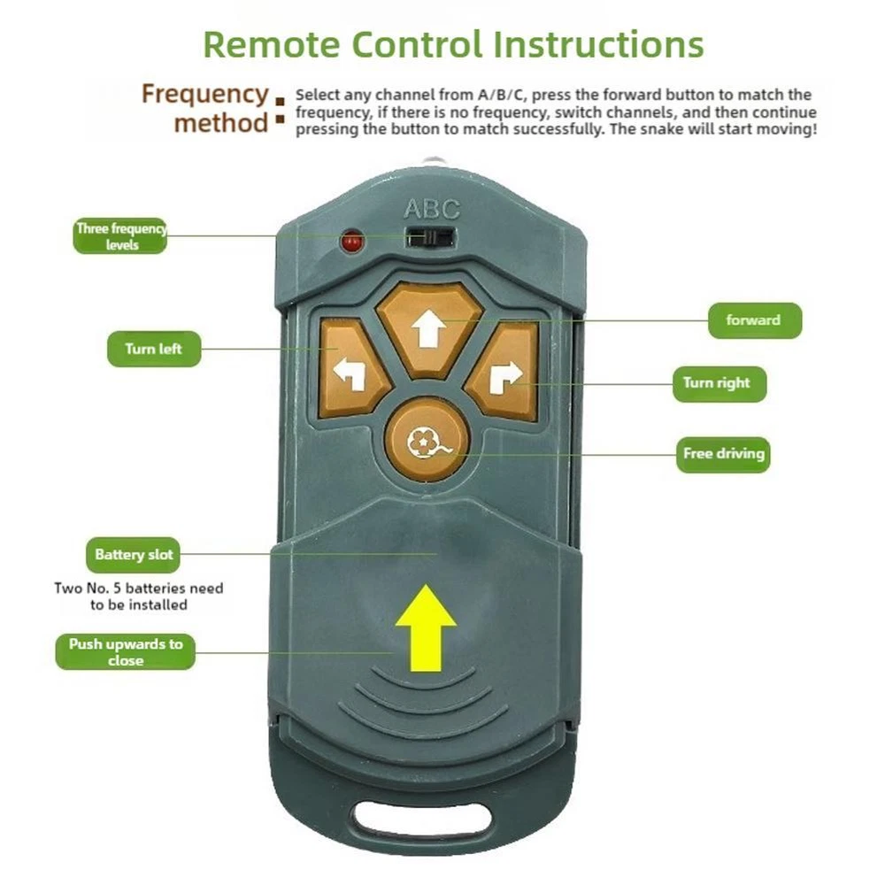 Description Description&Preview shipping&policy Description: Specification. Product Name: Remote Snake Toy Material: Electronic components/PP Remote control battery: 1.5V AA battery *2 Charging time: about half an hour Product size: about 48x5x4cm/18.9x1.97x1.57 inches Duration: about 20 minutes Control range: 15 metres Functions: Forward, turn left and right, tongue retractable Description Impressive Retractable Tongue: Take playtime to a new levels with the realistic movements of this remote snake toy's retractable tongue. Play with family and friends in a relaxed atmosphere and see who can handle the excitement. Simple to use via remote control, you'll have a blast simulating the dynamics of a real snake Realistic image: People can't resist the realistic movements of our remote snake toy, which bends and twists like a real snake. With its impressive ability to mimic the shape, color, and lines of a serpent, this toy is sure to captivate anyone who sees it Advanced Control Functionality: With its convenient design, you can control its movements precisely, ensuring more fun and interaction. Experience advanced control functionality, and delight in the more fun and interaction with this convenient design Surprising pranks: Ideal for gatherings, this imaginative trick toy not only scares but also connects friends and family through laughter and surprise Ideal Present: Be the life of the parties with this remote snake toy. Ideal for something different, people will love it and want to play with it all night long, making it a perfect ice-breaker and opening-remarks Pack list. Remote Snake Toy*1 Remote control*1 usb charger*1 Preview: Thank you for your purchase Problems? You can follow below process to contact us. There is a time zone difference,but we will do our best to quickly response to your questions: Shipping ● We will arrange shipping for you within 24 Hours after payment cleared except the holidays. ● We always send the item to the address you give us on Payoneer to ensure the security of the item. If you have changed your address, or want us to ship to another address, please change to the new address when you pay us with Payoneer, otherwise we will not be responsible if the package is lost. Payments We accepts Payoneer only If you have any questions about the payment,please contact us through eBay message. Import Duties In case some duty is due Upon delivery, it is your responsibility to meet that expense and this may cause delays to delivery schedule and you may have to pickup goods at the customs office. Terms & Conditions By bidding on this item,the Buyer agrees to all of the terms and conditions as outlined in this listing .please ensure to read and agree to All eBay terms and Conditions before bidding. All pictures are for illustration purpose only and Colours may vary slightly. Our store obeys all eBay Rules and Policies. Returns Policy To Return an item you must contact us and take photos of your item to clearly show any damage or unusual aspects of it. Approved returns will be subject to inspection on arrival. Items must be returned in original condition with all original packaging. All shipping and handing charges are non-refundable Return delivery costs are the responsibility of the buyer. We will cover the cost if sending replacement/repaired items. Within 7 days after receiving your products, we offers a no-hassle 7 day exchange/replace only if your items are found to be defective by manufacturer.
