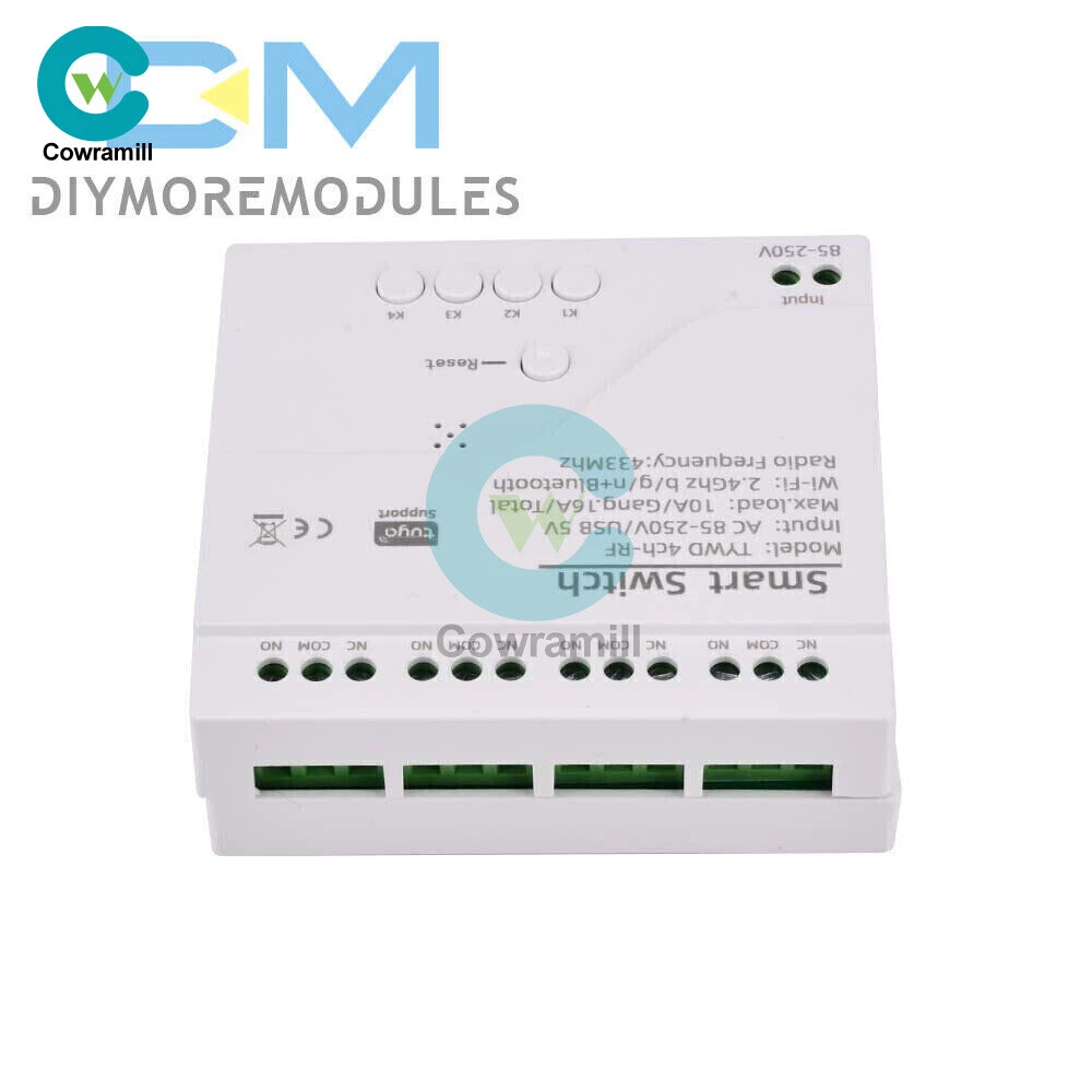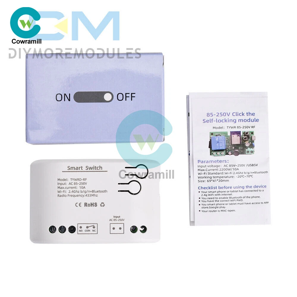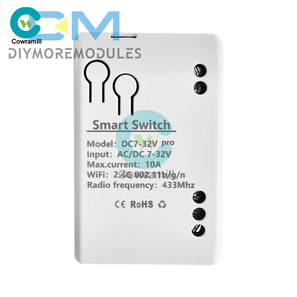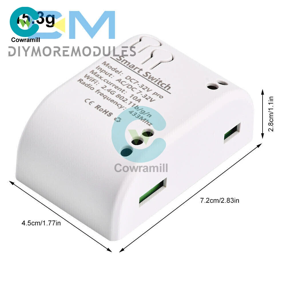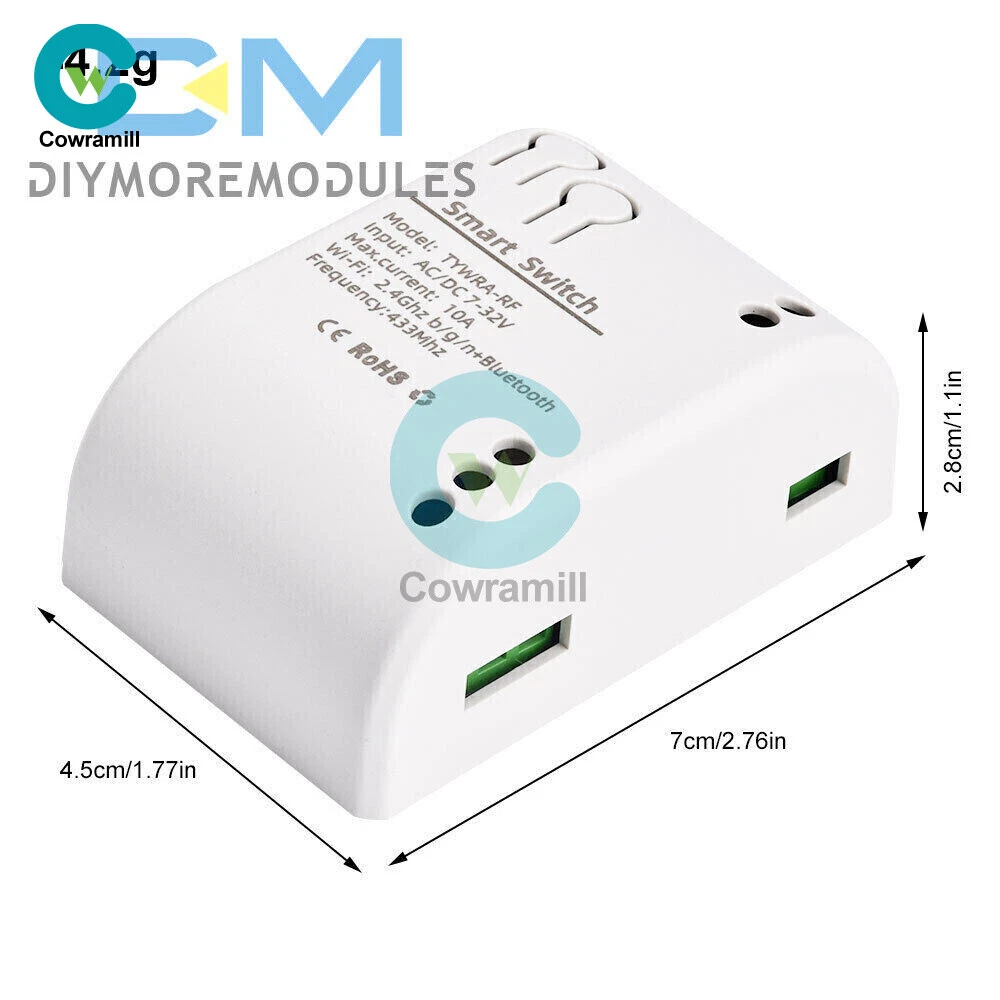 Home Arduino Module Sensor Chips About Us Item Description Features: App support: Free iOS and Android mobile app Smart Life / Tuya Smart. Synchronised status: Real-time device status provided to the app. Remote on/off: remote on/off of 4 electronic devices from anywhere. RF remote control: Indoor 433MHz RF remote control on/off, only 433MHz learning code is supported Some 433 remotes may not be supported. Independent control: control each gang individually in the APP Doodle. Supports remote turn on or off of connected appliances such as lights, kettles, rice cookers, electric curtains etc. DIN rail mounting: ideal for industrial control. Voice control: perfect compatibility with Amazon Alexa, Google Home, Google Nest, IFTTT. Shared control: control your smart home with your family. Product parameters: Input voltage: DC 7V~32V/AC85-250V (optional) Micro USB: 5V Maximum current: 2000W /10A Wireless Standard:Wi-Fi 2.4GHz b/g/n RF: 433MHz Operating temperature: -20°C~70°C Please check the following before using the device: Your smartphone or tablet is connected to a 2.4G WIFI with internet access (5G WIFI is not supported at this time) The phone is Bluetooth enabled Your Android phone or tablet must be version 4.0 or above With an Apple phone or IPad you must be able to access the APP shop and download the APP If your wireless router is set up with MAC address filtering, please enter the background of the router to turn off the MAC over speed function first Packing list: 1*Wifi Remote Control Module Payment Shipping Refund Payment We accept PayPal only. But we only Accept your Ebay Address ,Please Make sure it's 100% right. Payment must be received in 5 business days of auction closing. Please leave note for your special request (e.g. Colors or Size) in PayPal when you pay the order. Any special request cannot be accepted after 24 hours of payment, because most of orders will be processed instantly and same day dispatched. Shipping Fill your shipping info Refund All package need to wait 30 days (US only need 7-10 days) , Please take care it.Less than 30 days,we can't take a refund . If the item is defect when you receive it or you are not satisfied with it, please return it within 14 days for a replacement or money back. But the items must be back in factory condition. Please contact us and double check the return address before you return it. If is item is defective in 12 months, you can return it to us. We will send you a new replacement after receiving the defective item.