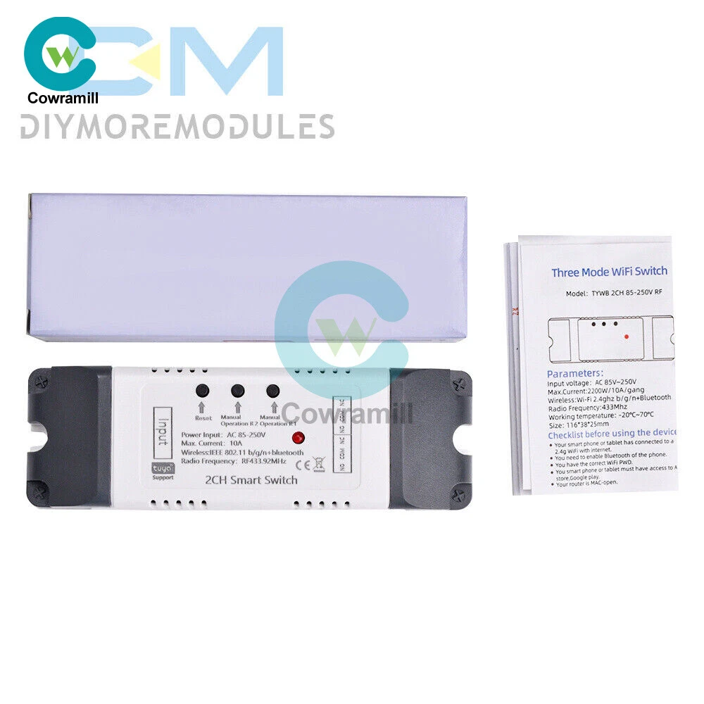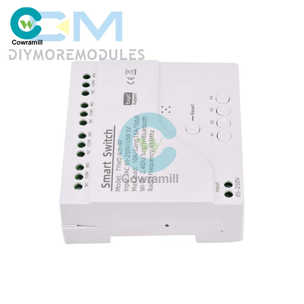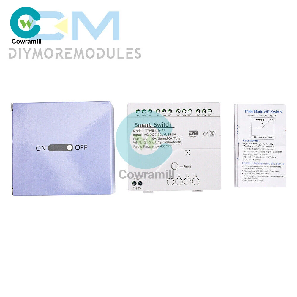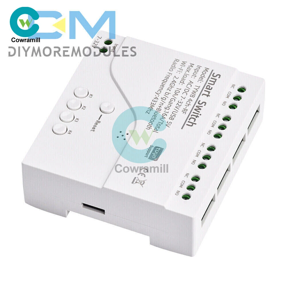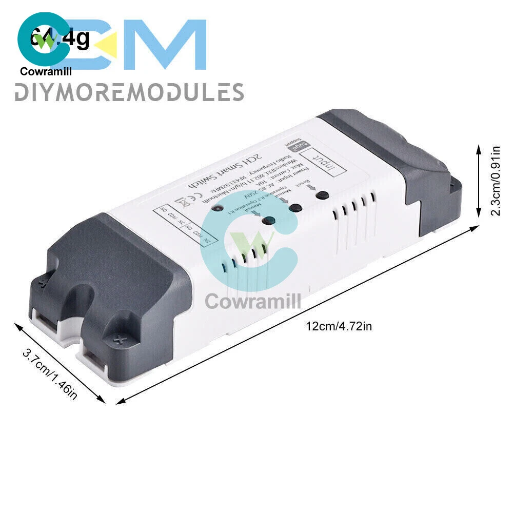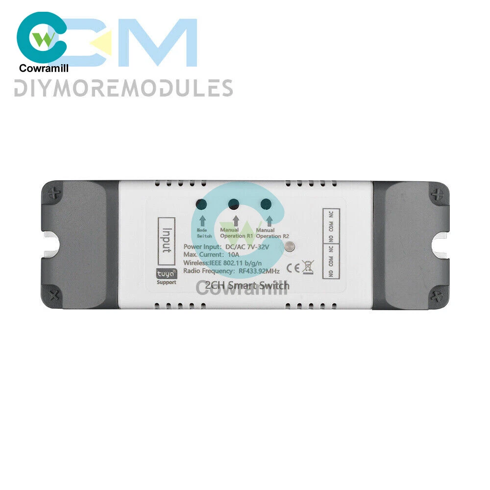 Home Arduino Module Sensor Chips About Us Item Description Features: App support: Free iOS and Android mobile app Smart Life / Tuya Smart. Synchronised status: Real-time device status provided to the app. Remote on/off: remote on/off of 4 electronic devices from anywhere. RF remote control: Indoor 433MHz RF remote control on/off, only 433MHz learning code is supported Some 433 remotes may not be supported. Independent control: control each gang individually in the APP Doodle. Supports remote turn on or off of connected appliances such as lights, kettles, rice cookers, electric curtains etc. DIN rail mounting: ideal for industrial control. Voice control: perfect compatibility with Amazon Alexa, Google Home, Google Nest, IFTTT. Shared control: control your smart home with your family. Product parameters: Input voltage: DC 7V~32V/AC85-250V (optional) Micro USB: 5V Maximum current: 2000W /10A Wireless Standard:Wi-Fi 2.4GHz b/g/n RF: 433MHz Operating temperature: -20°C~70°C Please check the following before using the device: Your smartphone or tablet is connected to a 2.4G WIFI with internet access (5G WIFI is not supported at this time) The phone is Bluetooth enabled Your Android phone or tablet must be version 4.0 or above With an Apple phone or IPad you must be able to access the APP shop and download the APP If your wireless router is set up with MAC address filtering, please enter the background of the router to turn off the MAC over speed function first Packing list: 1*Wifi Remote Control Module Payment Shipping Refund Payment We accept PayPal only. But we only Accept your Ebay Address ,Please Make sure it's 100% right. Payment must be received in 5 business days of auction closing. Please leave note for your special request (e.g. Colors or Size) in PayPal when you pay the order. Any special request cannot be accepted after 24 hours of payment, because most of orders will be processed instantly and same day dispatched. Shipping Fill your shipping info Refund All package need to wait 30 days (US only need 7-10 days) , Please take care it.Less than 30 days,we can't take a refund . If the item is defect when you receive it or you are not satisfied with it, please return it within 14 days for a replacement or money back. But the items must be back in factory condition. Please contact us and double check the return address before you return it. If is item is defective in 12 months, you can return it to us. We will send you a new replacement after receiving the defective item.