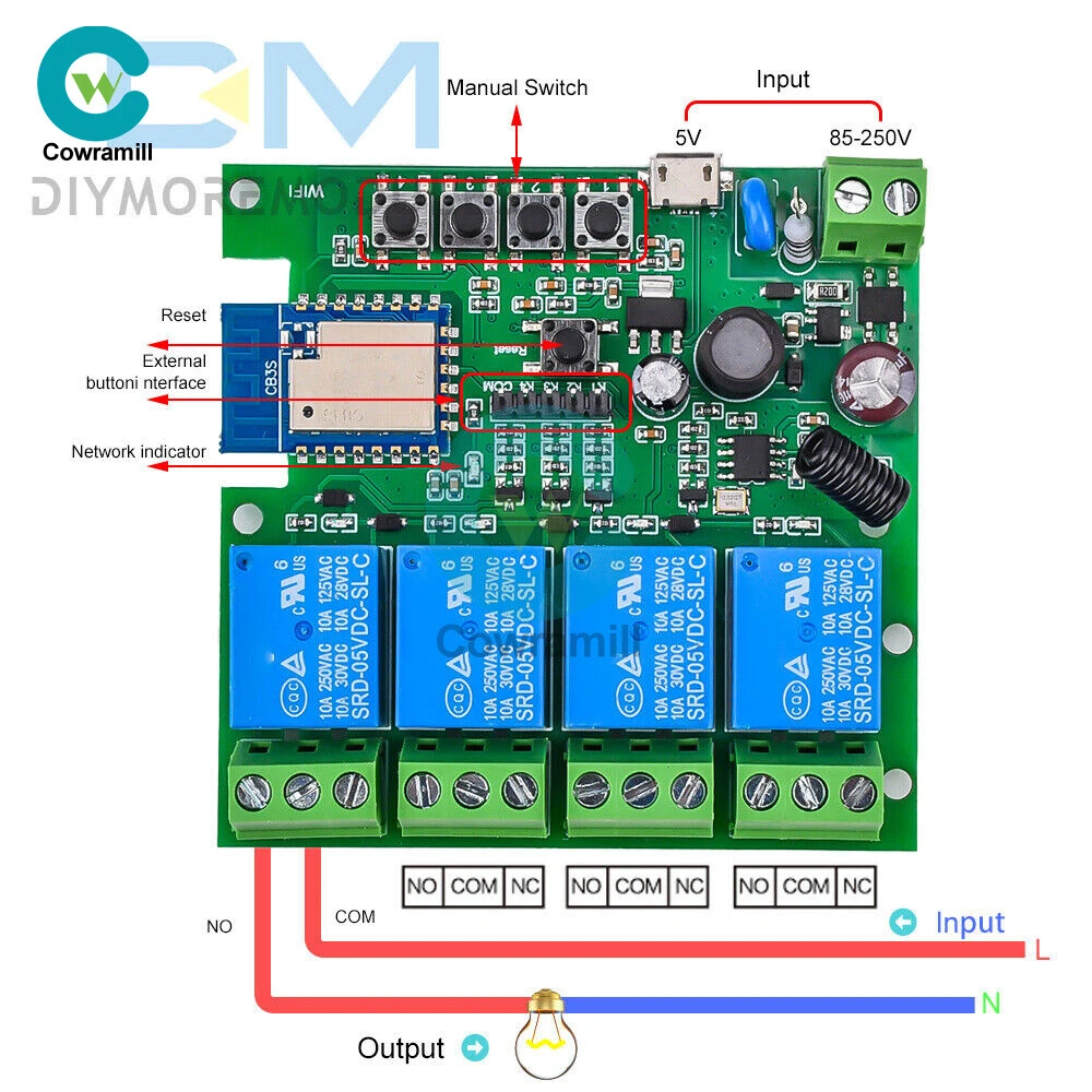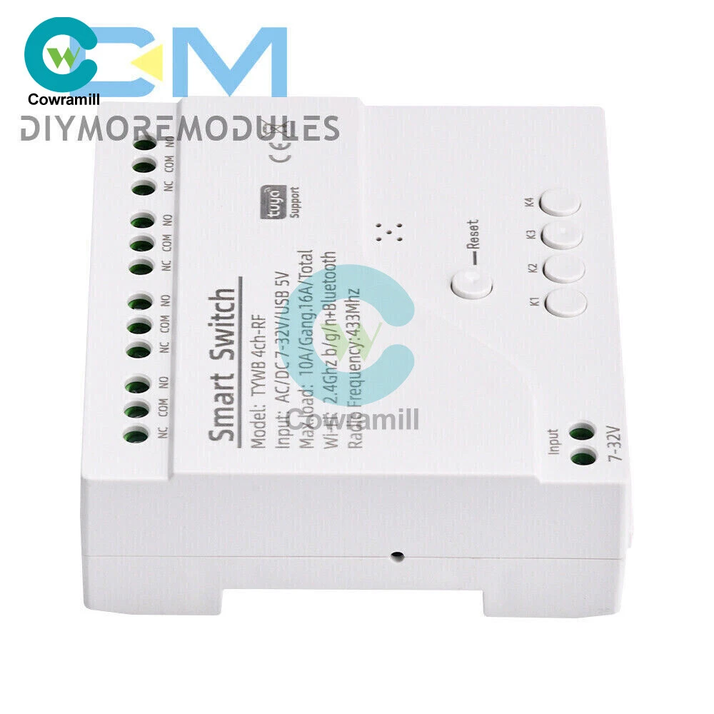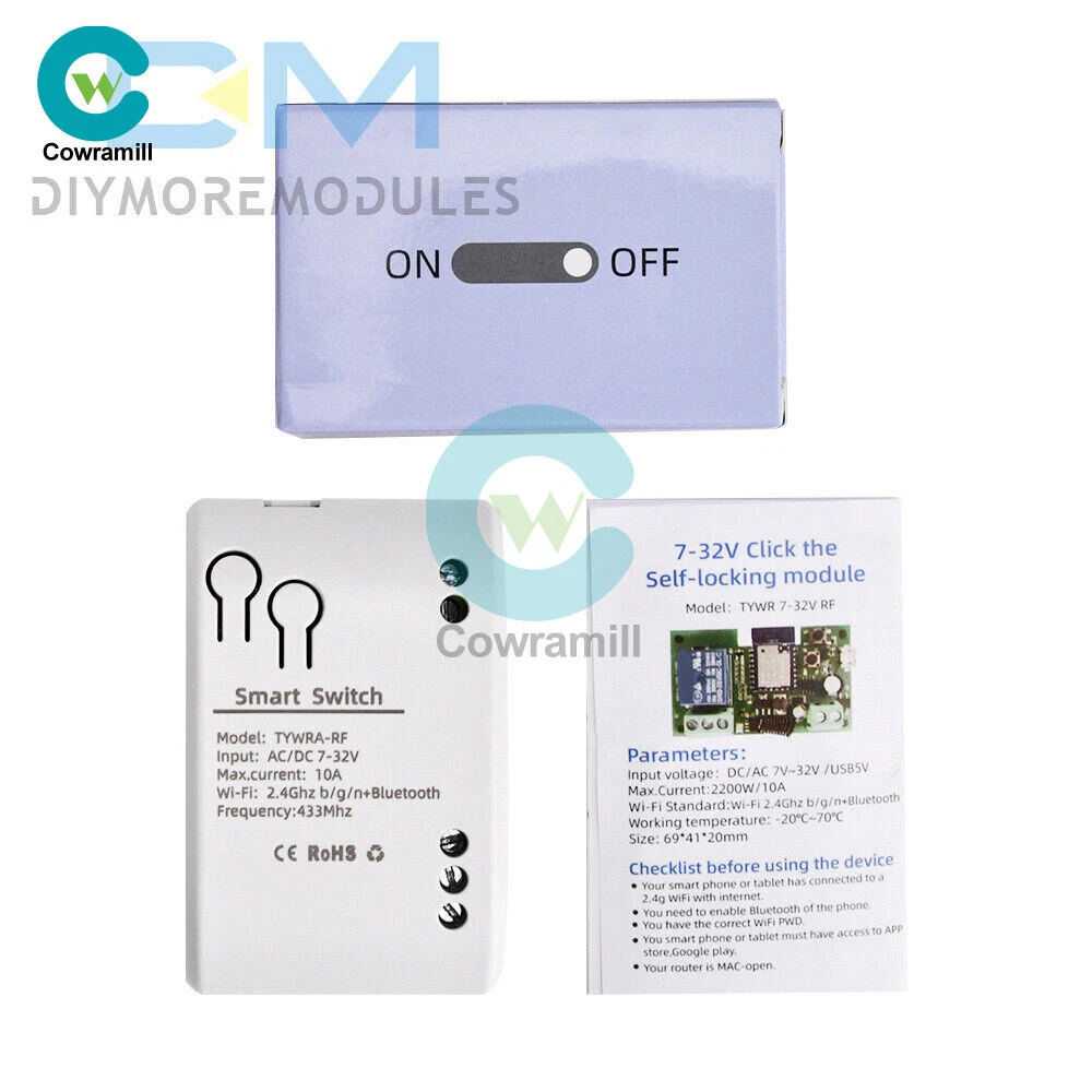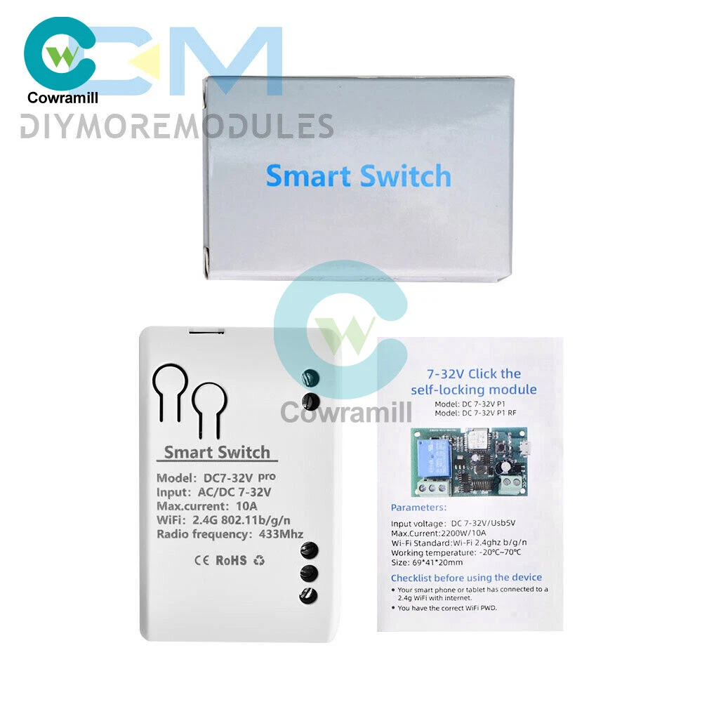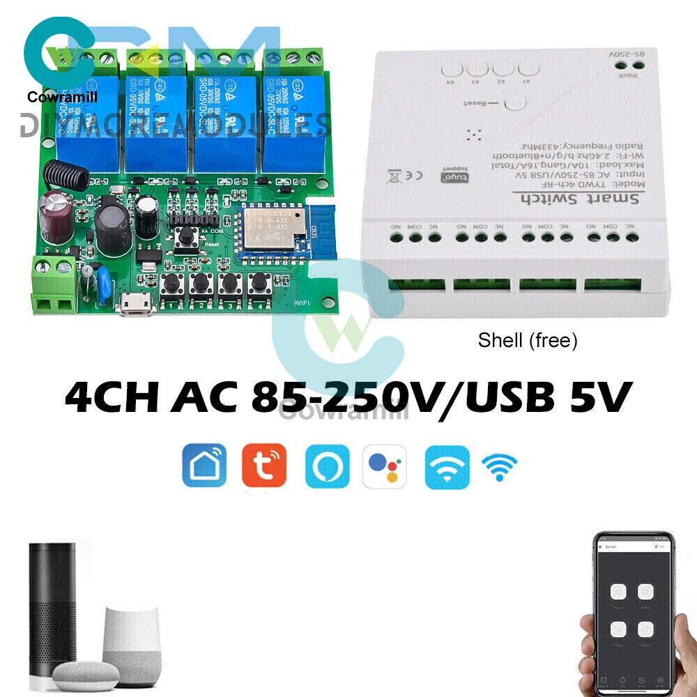 Home Arduino Module Sensor Chips About Us Item Description Features: App support: Free iOS and Android mobile app Smart Life / Tuya Smart. Synchronised status: Real-time device status provided to the app. Remote on/off: remote on/off of 4 electronic devices from anywhere. RF remote control: Indoor 433MHz RF remote control on/off, only 433MHz learning code is supported Some 433 remotes may not be supported. Independent control: control each gang individually in the APP Doodle. Supports remote turn on or off of connected appliances such as lights, kettles, rice cookers, electric curtains etc. DIN rail mounting: ideal for industrial control. Voice control: perfect compatibility with Amazon Alexa, Google Home, Google Nest, IFTTT. Shared control: control your smart home with your family. Product parameters: Input voltage: DC 7V~32V/AC85-250V (optional) Micro USB: 5V Maximum current: 2000W /10A Wireless Standard:Wi-Fi 2.4GHz b/g/n RF: 433MHz Operating temperature: -20°C~70°C Please check the following before using the device: Your smartphone or tablet is connected to a 2.4G WIFI with internet access (5G WIFI is not supported at this time) The phone is Bluetooth enabled Your Android phone or tablet must be version 4.0 or above With an Apple phone or IPad you must be able to access the APP shop and download the APP If your wireless router is set up with MAC address filtering, please enter the background of the router to turn off the MAC over speed function first Packing list: 1*Wifi Remote Control Module Payment Shipping Refund Payment We accept PayPal only. But we only Accept your Ebay Address ,Please Make sure it's 100% right. Payment must be received in 5 business days of auction closing. Please leave note for your special request (e.g. Colors or Size) in PayPal when you pay the order. Any special request cannot be accepted after 24 hours of payment, because most of orders will be processed instantly and same day dispatched. Shipping Fill your shipping info Refund All package need to wait 30 days (US only need 7-10 days) , Please take care it.Less than 30 days,we can't take a refund . If the item is defect when you receive it or you are not satisfied with it, please return it within 14 days for a replacement or money back. But the items must be back in factory condition. Please contact us and double check the return address before you return it. If is item is defective in 12 months, you can return it to us. We will send you a new replacement after receiving the defective item.