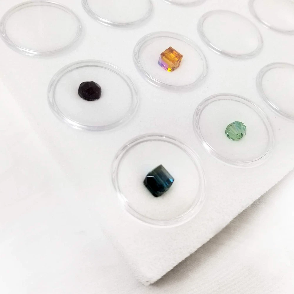 GLASS TOP JEWELRY DISPLAY CASE - Ideal for display your ring, earring, gems painting diamond, gem collection or any of your compact collection. ORGANIZER BOX FOR COLLECTION - Glass top display case with 50 pieces gem jar tray liner. JEWELRY DISPLAY TRAY BOX - Great for trade show or retail store, the case and the latch are sturdy and safe to keep your collection well. The glass top helps you keep your contents from dust and secure while storing them. MATERIAL & SIZE - Leatherette; Overall: 14 7/8"W x 8 1/2"D x 2''H ; The inside diameter of each gem jar measures approximately 30mm dia x 15mm H". Official MOOCA product. Accessories are NOT included. Product Details This display case is made of leatherette-wrapped case with a glass top. It contains 50 pieces of jar topped with white foam. The case is sturdy and the glass is not thin and flimsy, also keep your contents inside dust free and the latch on the lid keep your contents safe. Great for storing your ring, earring, jewelry, gem painting diamond, agates, cufflink, or any collections you want. The case is easily portable while traveling too. FEATURES -The case is made of leatherette-wrapped case with a glass top. -Comes with 50 pieces gem jar tray liner inside. -Box comes with metal clasps in the front to keep your contents safe. -Ideal for storing earring, ring, gemstone, minerals, diamond, cufflink, or any of your collection. -Easily take the inserts and containers out for storing your contents. Size Overall: 14 7/8"W x 8 1/2"D x 2''H"; The inside diameter of each gem jar measures approximately 30mm dia x 15mm H". Accessories are NOT included.