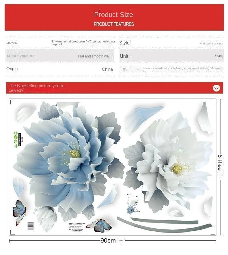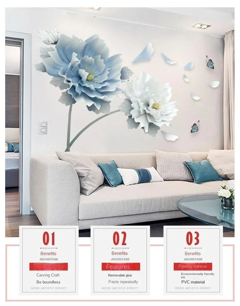 Subject: Flower Character: flower Color: Blue Type: Decal Character Family: sticker gtin13: Does Not Apply Room: Any Room, Bathroom, Bedroom, Cloakroom, Closet, Dining Room, Entryway, Foyer, Garage, Greenhouse, Guestroom, Kitchen, Living Room, Lounge, Office, Patio, Porch, Study, Sunroom, Kids Room, Nursery UPC: Does Not Apply Department: Unisex Baby & Toddler, Kids, Teens, Adults, Men, Women Theme: Romantic, wall Sticker, Decal, Vinyl, home decor, kids room Decor, living room, living room Decor, lucky sticker, background Style: Romanticism Features: DIY, Decorative, Removable, Self-Adhesive, Smooth, Waterproof Material: Vinyl Suitable For: Door, Wall, Wardrobe, Window Shape: Flower Brand: Home Decor