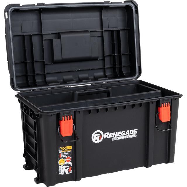 Renegade Industrial Large Stacker Stackable Storage Tool Box Product Description Large Stacker These Renegade Industrial Large Stackable Storage Toolboxes are industrial quality & ideal for professional use. These heavy-duty storage tool boxes are compatible for stacking with the Renegade Industrial Slim Storage Tool Box (RISSTBSS) & the Renegade Industrial Mobile Storage Tool Box (RISSTBMS), the Renegade Industrial Clear Lid Stackable Storage Tool Box (RISSTBCL) & the Renegade Industrial Open Box Crate Stackable Storage Tool Box (RISSTBOB) (sold separately). These 5 toolboxes can be stacked & locked on top of each other for safety & transport with the heavy-duty clipping system. Features include a waterproof seal & purge valve. Made from Polypropylene (PP) for impact strength & durability for anything the jobsite throws at you. Includes 1 x Tool Tray Features Equipped - With Waterproof Seal & Purge Valve Compatible - For Stacking with the Renegade Industrial Slim Storage Tool Box (RISSTBSS) & the Renegade Industrial Mobile Storage Tool Box (RISSTBMS), the Renegade Industrial Clear Lid Stackable Storage Tool Box (RISSTBCL) & the Renegade Industrial Open Box Crate Stackable Storage Tool Box (RISSTBOB) (Sold Separately) Made From Polypropylene (Pp) - For Impact Strength & Durability TradeTools Exclusive! Specifications Material Polypropylene (PP) Dimensions 560 x 341 x 335mm Warranty 12 Month Industrial Warranty Technical Specification Brand Renegade Industrial Weight 6kg Listing and template services provided by inkFrog