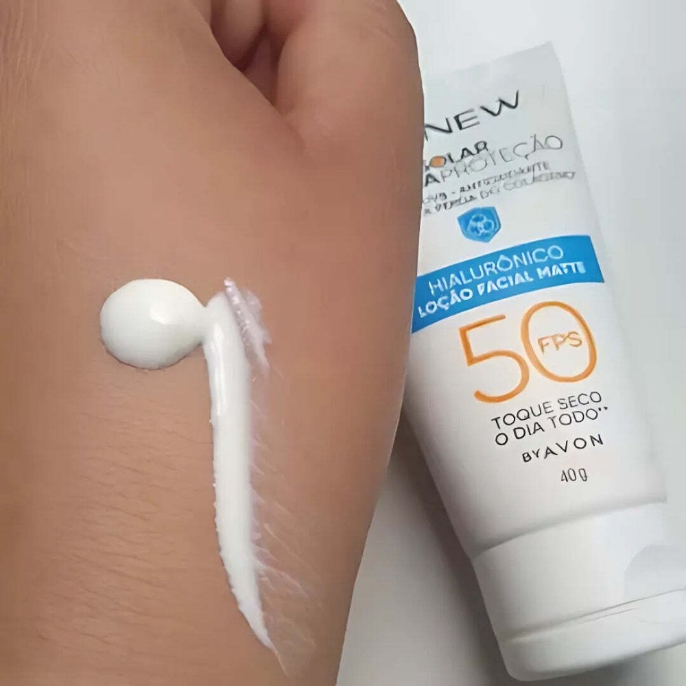 Renew Solar FPS 50 with Hyaluronic Acid fills in fine lines with a matte finish. Protects & treats: the more you use it, the more you feel the benefits. Renew Solar has Triple protection: 1) protects your skin from UVA/UVB rays 2) antioxidant 3) against collagen loss. Much more than sun protection, it fills in fine lines through hyaluronic acid. With a long-lasting matte finish, it also has 5 tone options that leave your skin with uniform coverage. Does not leave white or gray residue on any skin tone; Prevents sun spots. Contains: -01 Renew Solar Hyaluronic Matte Facial Skin Protector Sunscreen SPF50 40g Avon