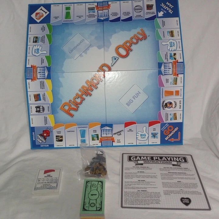 Replacement Parts/Pieces w/ Board for Richmond-Opoly Late For the Sky Board Game
