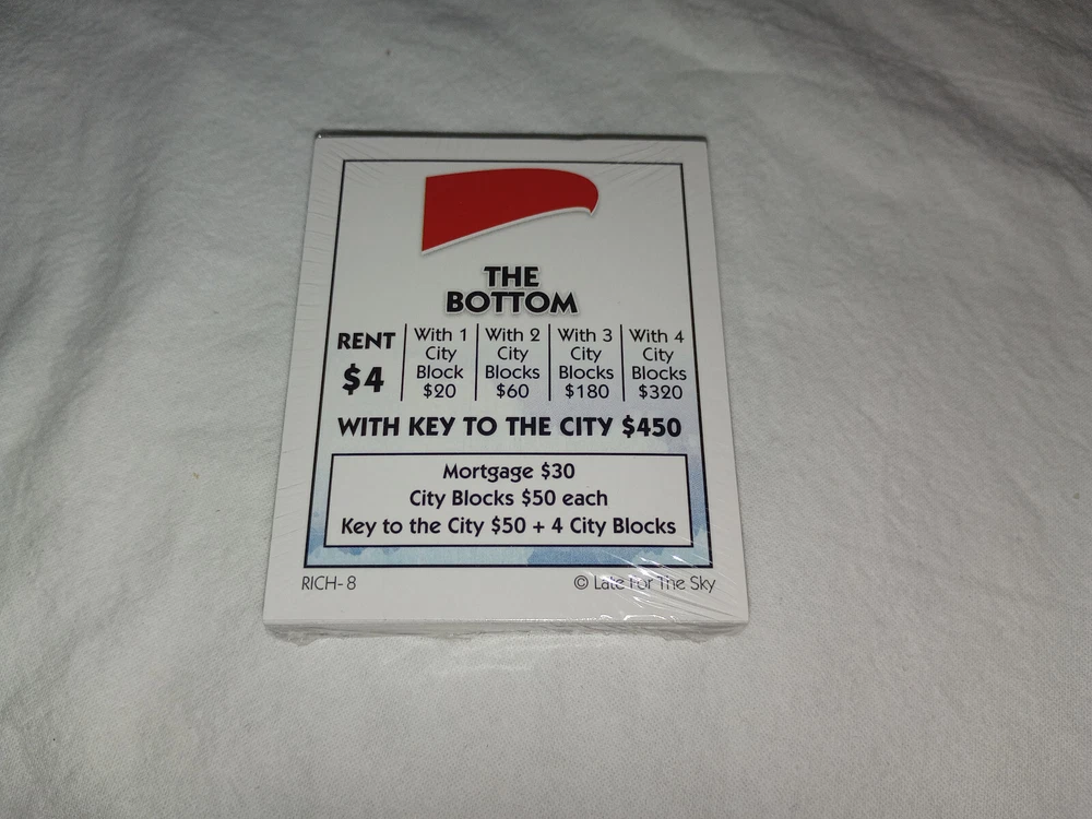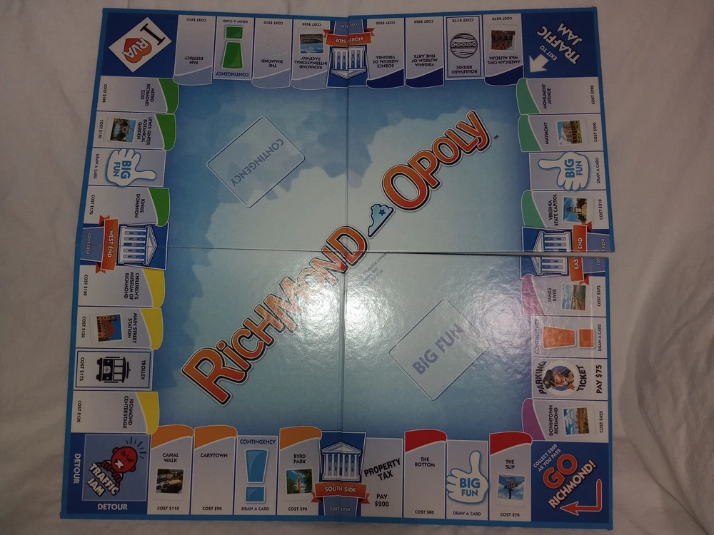 Game Title:Richmond Opolygtin13:0730799007002Min. Number of Players:2Recommended Age Range:8+Game Type:Strategy and war gamesType:Boxed GameAge Level:8-11 Years, 12-16 Years, 17 Years & UpBrand:Late for the SkyUPC:0730799007002Theme:FinanceCountry/Region of Manufacture:United StatesGender:Boys & Girls