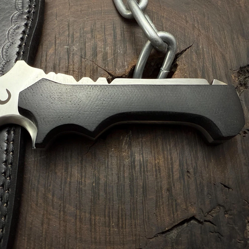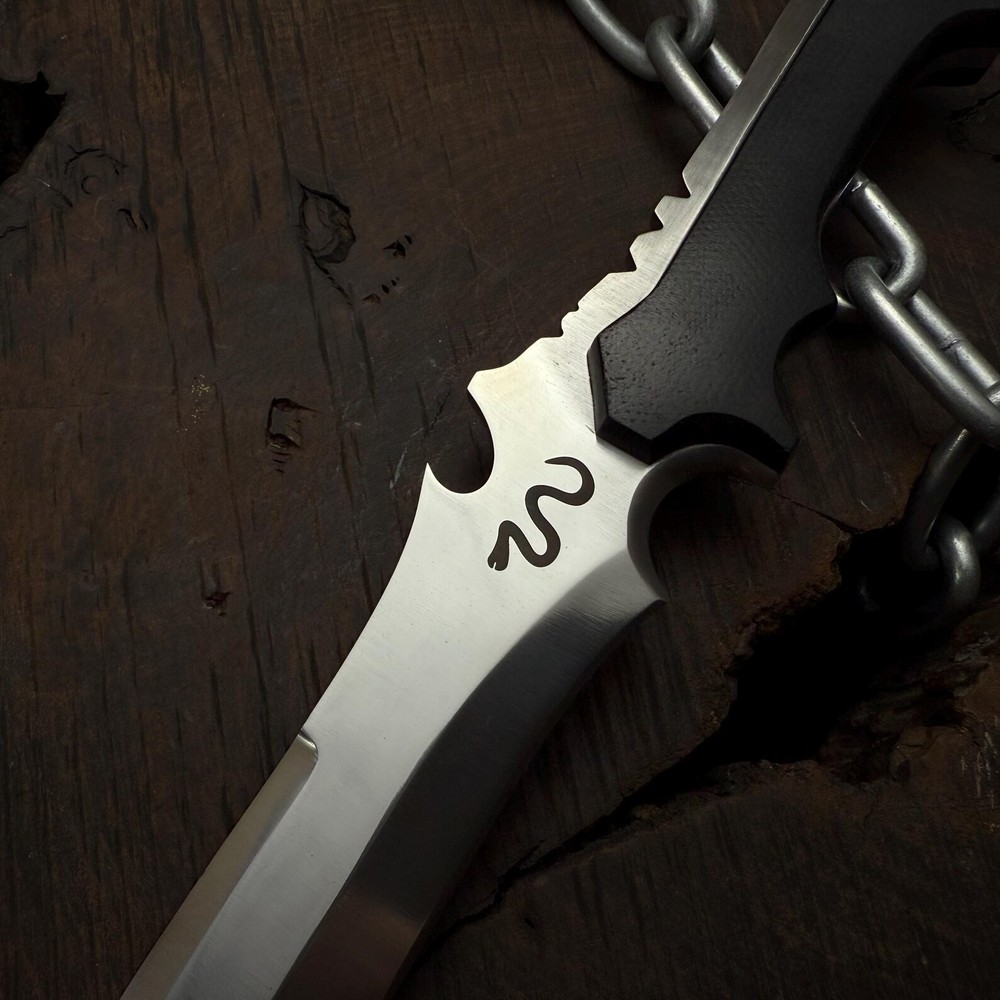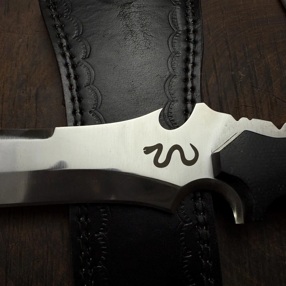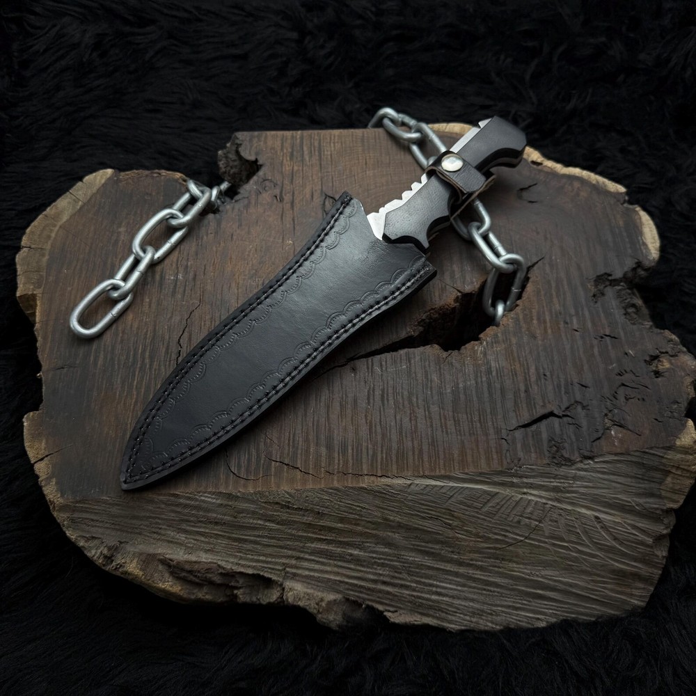 Resident Evil 4:Remake Jack Krauser Replica Knife | Gaming prop | Custom Hunting Knife | Gift for him | Gift for Colleagues | Birthday Gifts | Gift for husband | Personalized gifts | Razor sharp | Full tang blade | Micarta handle | high polished d2 steel | Anniversary Gifts | Men's gift | Father's day gifts | Outdoor camping | Custom knives | Leon kennedy knife | Resident evil collectibles | Famous game replica | Cosplay knives | Cosplay gears | Meat cut | Sharp knives | Best knives | Unique gifts Dimensions & Measurements: Overall Length: 15” Blade Length: 10” Handle Length: 5” Materials: Blade Material: carbon Steel. Handle Material: Black Micarta Leather Sheath: Premium Leather Sheath will be provided. The Resident Evil Jack Krauser Replica Knife from The Titans Edge is a stunning tribute to the iconic weapon used by the infamous character in the Resident Evil series. This meticulously crafted knife features a distinctive, robust blade designed for both durability and style, capturing the essence of Krauser's fierce persona. Made from high-quality materials, this replica knife is perfect for collectors and fans of the franchise.