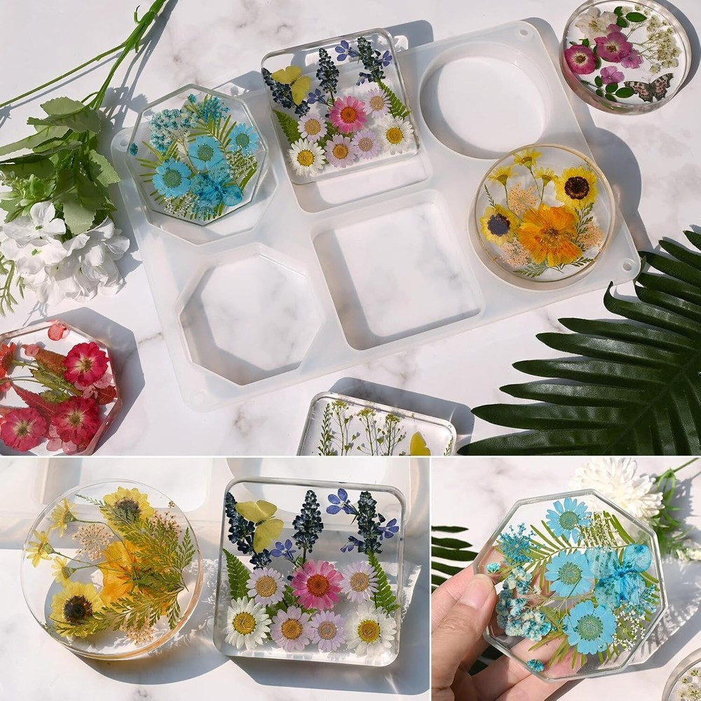Resin Large Coaster Molds 6-Cavity Deep Round Silicone Molds for Resin... About this item: Large Coaster Resin Mold: 6 cavity round coaster molds height: 0.8 inch, filling a coaster requires 5.5oz epoxy resin. Silicone mold easy to demold and durable. The interior of the mold is smooth and glossy, ensuring a smooth surface of the finished product without the need for polishing. Silicone Mold for Resin Casting: Deep round coaster resin molds Ideal for making coasters, paperweights, wall decor, bowl mats, specimens, home decor, and more. You also can add dry flower, pearl pigment, mica powder, glitter and sequins into the resin molds to get a unique molds. Premium Quality Silicone Mold: Resin coaster molds are made of durable silicone by advanced techniques, with the flexible, smooth and reusable and high transparency, easy to use and clean. DIY Epoxy Molds: You can also share more time with your family and create unique dried flower, leaf, and insect specimens and other resin jewelry projects. It's a ideal gift choice to send to your friends family as Mothers' Day, Fathers' Day, Thanksgiving, Graduation seasons, Valentine’s day, Halloween or Birthday gifts. Suitable for Many Casting Materials: Silicone coaster mold for resin compatible with many casting materials, especially good for epoxy resin, casting resin, uv resin,and with the following casting materials such as gypsum, wax, soap, polymer clay, gypsum, etc.