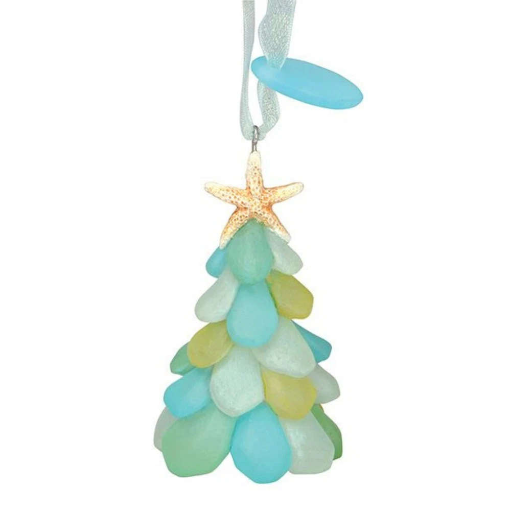 CHRISTMAS ORNAMENT Featuring a Tree that Looks Like Blue, Green and Yellow Sea Glass with a Starfish Topper MATERIAL: Resin SIZE: 2"Dia x 3.5"H INCLUDES a Looped Ribbon to Make for Easy Hanging PERFECT GIFT for Your Beach Loving Friends CHRISTMAS ORNAMENT Featuring a Tree that Looks Like Blue, Green and Yellow Sea Glass with a Starfish Topper MATERIAL: Resin SIZE: 2"Dia x 3.5"H INCLUDES a Looped Ribbon to Make for Easy Hanging PERFECT GIFT for Your Beach Loving Friends