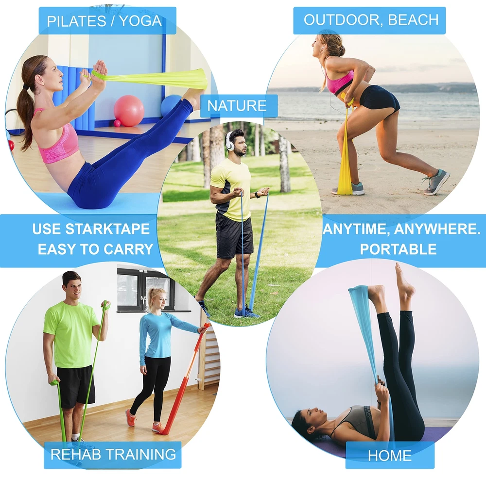 Non-allergenic, Non-Latex, Skin-friendly professional resistance bands. Made with premium TPE, no scent, and no powder, the elastic resistance band meets the needs of patients, practitioners, and personal users with latex allergies. Muscle toning, strength, flexibility improvement, physical therapy, and rehabilitation are just a few benefits of the perfect training. Super lightweight, robust, resilient, and durable, with excellent elasticity, our resistance band will stretch, tone, and condition all major muscle groups: legs, arms, shoulders, back, upper and lower body. Professional Latex-Free Resistance Bands Features: ABSOLUTELY NO LATEX. Made with premium TPE. Choose the strength you want, from beginner to advanced, Level 1 - Yellow - Extra Light - Strength 3 to 5 LBS Level 2 - Red - Light - Strength 5 to 10 LBS Level 3 - Green - Medium - Strength 10 to 15 LBS Level 4 - Blue - Heavy -Strength 15 to 20 LBS Level 5 - Grey - Extra Heavy - Strength 20 to 30 LBS. Try it now and see how do you feel after using resistance loop bands. Non allergenic, non-latex resistance bands. Robust, resilient and durable, with excellent elasticity, the elastic workout band will ensure the best exercise for your legs, butt, upper and lower body. Muscle toning, strength, flexibility improvement and physical therapy are just a few benefits of the perfect training. Super lightweight, portable carrying pounch: you can perform your legs, butt, core, or whole body workout in the comfort of your own home, at the gym, yoga, pilates studio, outdoor on the beach, or on the go. The light weight exercize bands are an easy and comfortable workout tool, proving to be the perfect choice for individual training, as well as for your Stretching, Physical Therapy, Rehabilitation, Bodybuilding, Wrestling, Losing Weight. 5.3 ft long by 6 inches wide. Suitable for every fitness level, men & women, from beginner to advanced: Your exercise bands set comes in five different resistance levels: Yellow - x-light 5lbs, Red - light 10lbs, Green - medium 15lbs, Blue - heavy 20 lbs, Gray - x-heavy up to 30lbs. You can easily tailor your training depending on your strength, ability, and comfort. It's a perfect alternative to your Strength heavyweights training and dumbells. Easy to use, fun for the entire family, from children to seniors. Whether you are a mom, a dad or a grandma, these fitness bands are right for you. People Love doing fun home exercises with the bands, they are a MUST item for staying in good health. Research has proven that resistance band provides as much benefit in fitness health and strength gains as weights training equipment. Just give it a try and see how would you feel after using the resistance loop bands. We like You! Is it too soon to say that? We care so much about your happiness that we hired a bunch of the best, nicest, most awesome human beings we could find to help with anything you need. We call them the Customer Happiness Team, and they’re your go-to when you need an information, a recommendation, a refund, or just a reason to smile. Seriously, reach out. Even just to say hi. Add to cart now and join thousand satisfied customers!