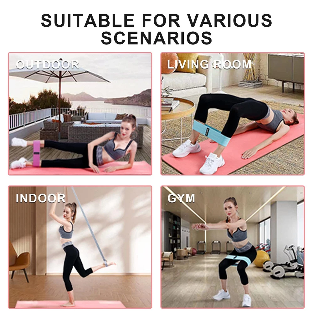 【Versatile】Resistance booty bands set are incredibly versatile and can be used for a wide range of exercises.You can use it anywhere, at home, at the gym, or even on a trip. With just a yoga mat, you can exercise your thighs, lift your butt, and create your perfect butt figure. 【Excellent Quality】our booty bands are made of polyester and latex free cotton, a thick fabric that, even over time, remains elastic enough that you don't have to worry about tearing or stretching. You can use it safely 【3 Different Resistance Levels】The resistance bands is divided into 3 different levels of resistance : Light (Green), Medium (Pink) and Heavy (Purple).We provide different levels of fabric resistance bands for people with different training levels to achieve training purposes. And what's more we supply 1 free long yoga stretch bands for beginning level. 【Easy To Carry&Use】This exercise band comes with a portable bag that you can carry with you at all times and it's lightweight so you can work your muscles anywhere. 【Remarkable Bands Service】If you are not satisfied during the warranty period, you can choose a full refund. We will also answer your questions as soon as possible within the working hours.