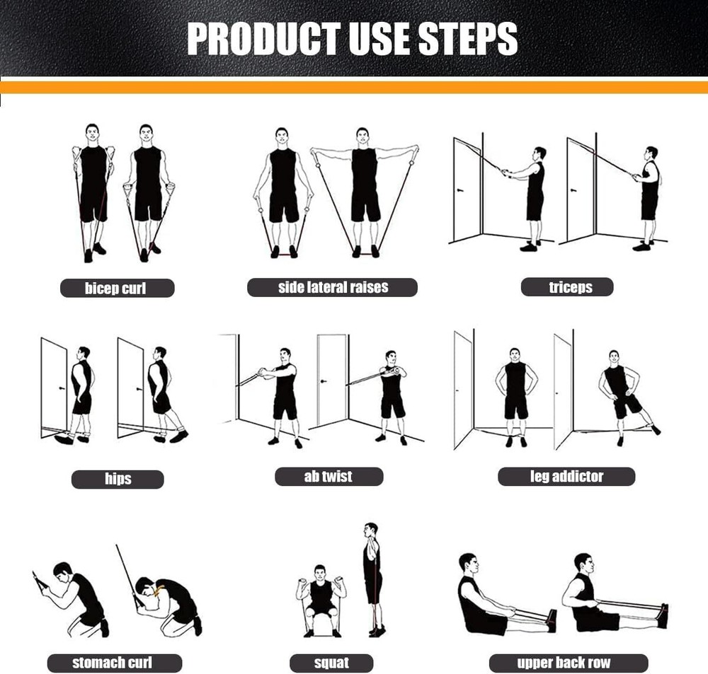 Product Description Resistance Bands For Working Out, Exercise Bands With Handles, Elastic Workout Bands For Men Women, Exercising Bands For Strength Training Equipment At Home Gym Versatile Resistance Bands: Resistance Bands Set Come With 7 Different Resistance Levels, 20Lbs, 30Lbs, 40Lbs, 50Lbs, 60Lbs, 70Lbs And 80Lbs In 7 Different Colors. You Can Use These Workout Bands Independently Or In Any Combination With A Maximum Resistance Level Of 350Lbs Full Body Workout: Whether You'Re Looking To Tone Your Muscles Or Build Strength, These Exercise Bands Provide The Ideal Workout Solution. The Unique Design Ensures That Resistance Is Maintained Throughout Every Part Of The Motion, Making Each Exercise More Effective And Efficient Portable Gym Equipment: This Elastic Resistance Band Set Is Lightweight And Easy To Carry, Making It The Perfect Portable Gym. Get Ready To Take Your Fitness Journey To The Next Level With This Comprehensive Set Of Workout Essentials Easy Storage: No Need To Worry About Clutter Or Limited Space, This Training Band Set Comes With A Convenient Cloth Pouch, Allowing You To Easily Store And Organize The Bands When Not In Use. This Compact Design Makes Them A Great Option For Home Workouts Or Travel Complete Set: 7 Tube Resistance Bands, 2 Soft Cushioned Handles, 2 Ankle Straps,1 Door Anchor,1 Exercise Guidance, 1 Carrying Bag About Us We are a reputable seller with many years of experience selling on eBay. Our goal is to provide high-quality products and excellent customer service. Shipping Items will be shipped within 1-3 business days when we received payment. (Orders are not processed on weekends & holidays) Tracking information will be sent once item is shipped. Delivery time depends on destination and other factors Item is shipped to ebay address. Leaving correct address can minimize delay. For international shipping and shipping to Guam, Hawaii and Alaska, Please contact us before placing the order. International buyers please note: Import duties, taxes and charges are not included in the item price or shipping charges. These charges are buyer’s responsibility. We will try our best to reduce the risk of the custom duties. Local pick-up is unavailable at the moment. Contact Us We reply any email messages within 1 business / working days(off-duty at weekend). If you do not get a response from us, then please check your junk or spam mailbox. Our Business hours: Mon-Fri 9:00-18:00, UTC/GMT +8 hours. Please contact us either by clicking "contact seller" in the "purchase history" section or simply click "ask a question" at the bottom of this page. If you are unsatisfied with our item or service, please contact us before leaving any feedback. We are committed to resolve all issues in a friendly and satisfactory manner.