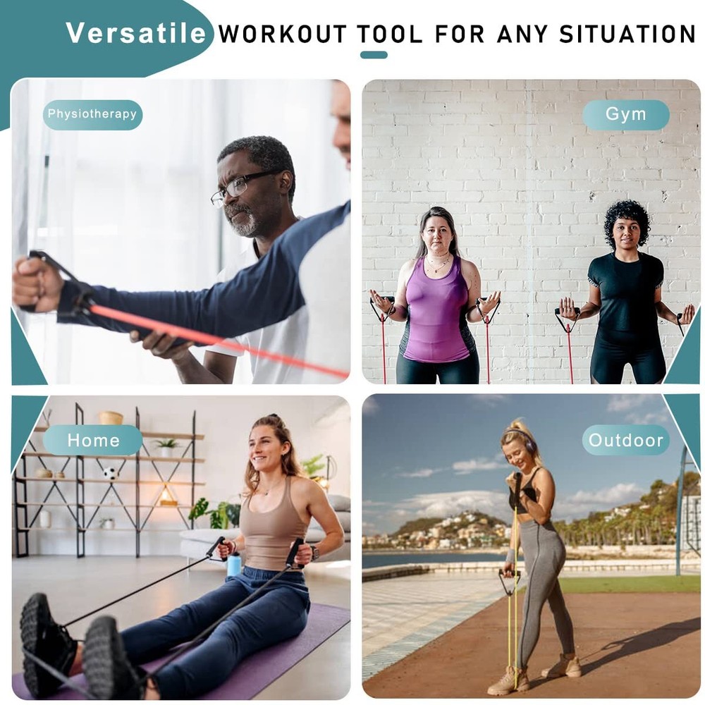 Resistance Bands with Handles for Resistance Training, Physical Therapy and Home Workouts - 30lbs Vary colors for various strengths: The Yellow resistance band provides 0-10lbs resistance, Red is between 10-20 lb, Green is between 20-30lbs, blue is 30-40lbs & black provides 40-50lbs resistance. Total body workout: The resistance bands aren’t just used to mend bodies as a low-impact tool to help absolve injury or pain, they’re now thought of as an important piece of gym equipment that help build muscle mass and stamina. You can use them to add resistance to your squats, bicep curls, or lunges—all without lifting a weighted barbell or heavy plate. Good quality materials: Our Resistance band is made of natural latex and is kind to the environment. Strong wear resistance and great elasticity, non-slip handle, comfortable and absorbent. Multifunction and portable: Our resistance bands can apply to different types of exercise. Good for toning your arms, shoulders, chest, glutes, legs etc. Also comes with a convenient travel pouch! You can also take your bands to Gym, Office, etc. Works for multiple workout scenarios: True resistance is maintained through every part of a motion. The resistance band set can be great with any popular workout like Yoga, Pilates and more. Or use them for general exercise, stretching, strength training, and power weight programs. Shipping We offer FREE shipping on all orders! We use a selection of shipping services such as UPS, FedEx, USPS etc. We only ship to the lower 48 states, no APO/FPO addresses or PO Boxes allowed. Local pickups and combined shipping options are not provided at this time. Return You can return a product for up to 30 days from the date you purchased it. Any product you return must be in the same condition you received it and in the original packaging. Please keep the receipt. Payment We accept payment by any of the following methods: PayPal Please pay as soon as possible after winning an auction, as that will allow us to post your item to you sooner! Feedback Customer satisfaction is very important to us. If you have any problem with your order, please contact us and we will do our best to make you satisfied. Contact Us If you have any queries, please contact us via ebay. We usually respond within 24 hours on weekdays. Please visit our eBay store to check out other items for sale! Thank you for shopping at our store.