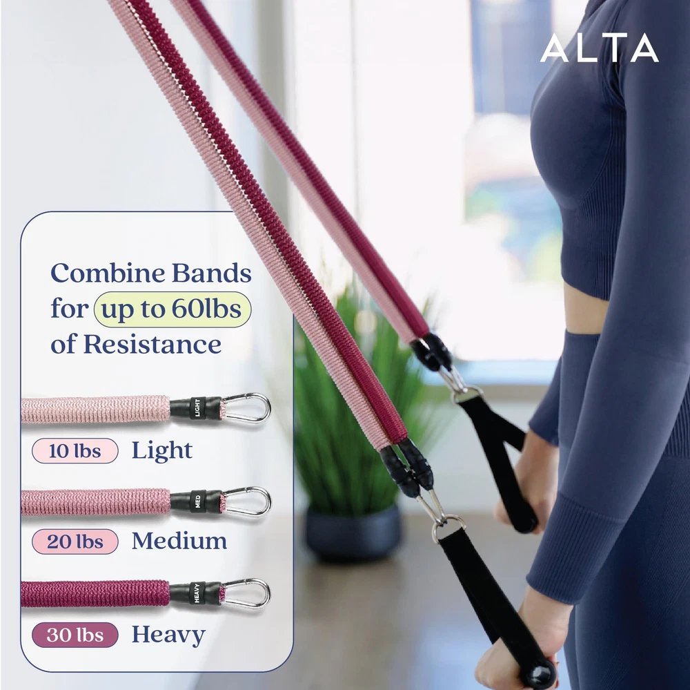 Introducing 's Exercise Bands with Handles for Women - the ultimate fitness companion designed for strength training and physical therapy. They go by many names, like excersing equipment, flat resistance band set, exercise band, weight bands, resistance band bar, excercise bands, door gym, training bands, variable resistance training, resustance bands set, resistant band workout, reaistance bands, exerciser band, cable resistance bands door anchor, resistence band, workout bands with handles, workout banda, tube bands, band exercise resistance, exercise banda, exersize bands, resistance band workout poster, resistance band handles, fitness bands resistance women, long resistance bands for arms, strength bands resistance set, resistance tubing, reistance bands, arm bands for workout, banda de resistencia para ejercicios, door workout equipment, excersise bands, arm resistance bands for exercise, door exercise equipment, resistance cables, arm workout bands, workout exercise band, exercise bands for arms, pink weight bands for exercise resistance, adjustable resistance band kit, leg resistance bands for women, red exercise band, squat resistance bands for seniors, fitness training bands resistance, tube resistance bands with clis, tube bands and ankle straps, exercise straps with handles, flex bands, tension bands for exercise, exercise bands for women, resistance tube, cosas para aser ejercicio, resistance exercise bands, exercise tubes with handles. Whatever you call them, 's physical therapy bands are the most durable and functional! Take them with you on a vacation or attach them to a door in your home for a full body workout! [Complete Set for Full Body Workouts] Our set includes three fabric resistance bands (Light, Med, Heavy), two comfortable handles, two ankle straps, a soft door anchor, and a travel backpack [Comfortable & Skin-Friendly] Our ScrunchKnit fabric sleeves not only look amazing, but they also prevent the rubber material inside the bands from rubbing your skin; perfect for those with sensitive skin [Never Snaps] Our workout resistance bands for women are designed to never snap; Unlike other exercise resistance bands with handles, 's arm bands for workouts set the bar for durability [On-the-Go Workouts] Stay active no matter where you are with our travel-friendly long resistance band set with handles; Our exercise band door anchor can attach the resistant bands to any hotel door [Customizable Resistance] Adjust the training bands' resistance from 10 to 60 lbs by stacking the bands; Use all three resistance tubes with handles for 60 lbs of resistance in your home workout.