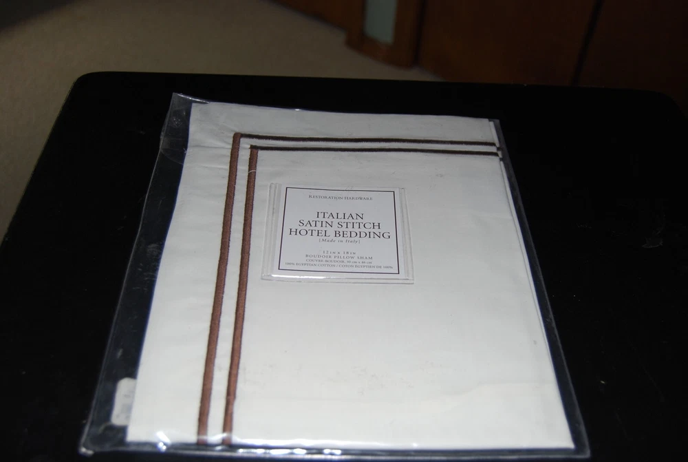 New in package old stock Restoration Hardware Italian Satin Stitch Hotel Bedding Boudoir Pillow Sham 12" x 18" new in package White with Brown embroidered stitching