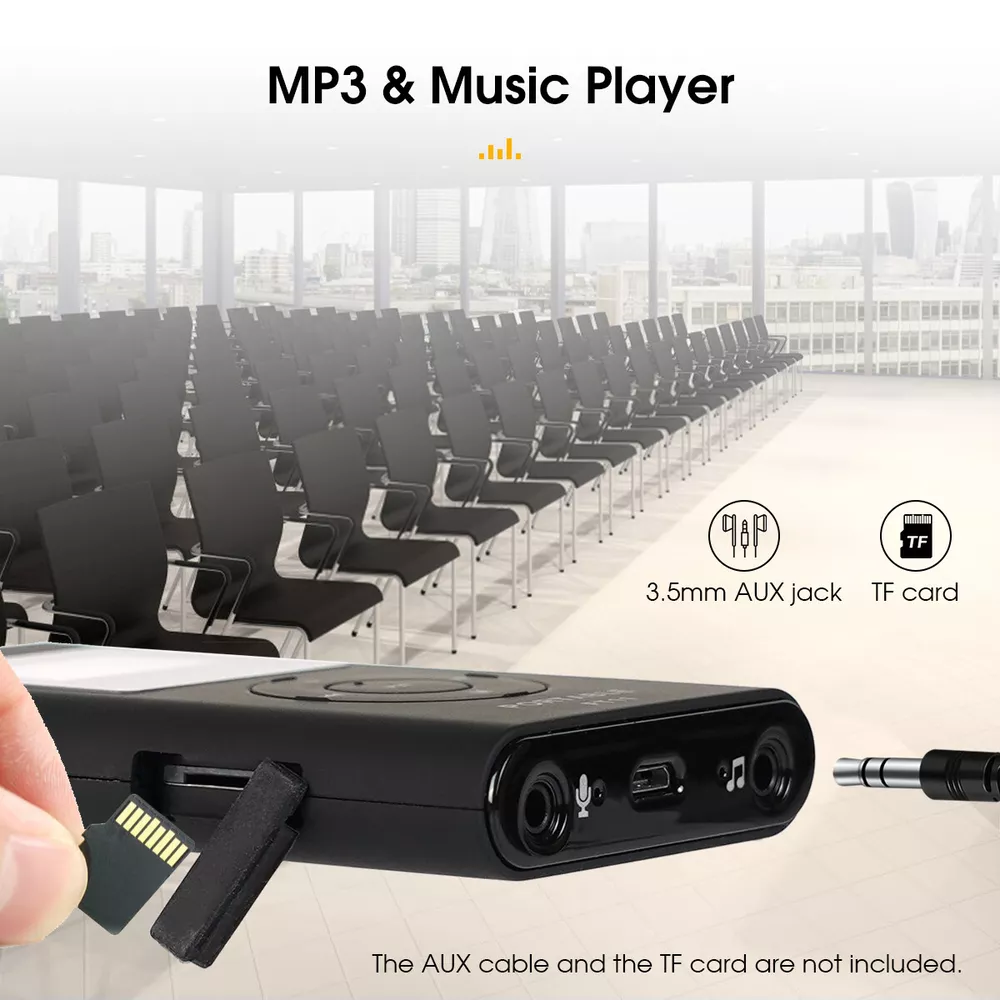 Features: Portable fashion design, good touch feelings Support transmit lossless music through the memory card and AUX input jack 3.5mm AUX input: transmit music from your smart phone, computer, MP3 or CD player Support store five commonly used transmission frequency Built-in microphone, support external condenser microphone Long press the MIC button to speak, release to end, easy to use FM frequency range 60-108MHz Automatic search and manual search the radio stations 5 station presets: you can manually store five favorite stations Press the 1-5 keys to quickly select storage station Mono / stereo selectable With 24-hour digital clock If you want to buy at more favorable price, or want to freely match the receiver, please contact customer service Shipping Service:Priority DHL Express from China to deliver item(2-7 business days) The frequency range of the transmitter is 76~108MHz. The frequency range of the receiver is 60~108MHz. You can adjust it according to your need when you listen to music or talk show. The transmission distance of the transmitter is 50-80m. You can clearly hear the introduction of the tour guide, even you fall behind the team. (Note: The actual transmission distance is affected by the environment and the battery status). With 5 stations preset, you can save stations that you like. You can easily use the TUN button to manually or automatically search stations. It is convenient to immediately reach and listen to the preset station you like with the number key. FT11 With built-in 1500mAh battery, the transmitter can continually work for 6-8 hours. No frequent charging matter, it is efficient to support a long-time conference. The battery powered receiver is convenient to use and can be easily taken with you anywhere. (Note: 2×AAA battery is not included). You can save some anecdotes of tourist attractions on your phone or TF card in advance. When travelling, you can share them with tourists through the AUX cable and TF card. (Note: The AUX cable and TF card are not included). The receiver supports mono sound and stereo sound. Mono sound offers you a louder sound. Stereo sound brings you an immersive listening experience. You can select as needed. With built-in microphone, the pastor can walk freely in the church when speaking. The external microphone can be clipped to the collar to free your hands. (Note: The wired microphone is included). The earphones are used as the antenna. Adopting DSP technology, the receiver is efficient to reduce noise and transmit clear audios, offering an enjoyable listening experience. It is efficient to prevent the receiver from changing current frequency and volume with the lock switch. You don’t need to worry about affecting worship or meetings. The volume is adjustable. In a worship or a conference, you can adjust the proper volume with button to ensure you can clearly hear the sound. FT11: Size: 99 x 58 x 15mm / 3.9 x 2.2 x 0.6 in Weight: 80g / 0.17lb PR13: Size: 92 x 54 x 15mm / 3.6 x 2.1x 0.6in Weight:40g / 0.09lb Adopting DSP technology, visitors can hear the clear sound transmission when machine are working. Prayers can easily finish a-long-time worship and don’t feel tired with lightweight and portable radio. Falling behind the team, tourists can clearly hear the sound. Wherever attenders sit, they can clearly hear the meeting contents through their earphones. Solution Introduction: This simultaneous interpretation solution is achieved as follow: the voices are transmitted via transmitter's(FT11) microphone to interpreters and corresponding listeners equipped with receiver( PR13). Then they are interpreted into different languages and transferred to receiving apparatus(PR13) by means of transmitter's microphones outfitted for relative audience's listening. Application Scene: This simultaneous interpretation solution caters for following event: forum speech, academic exchange, product launch, business celebration and so on, depending on product specifications and features. Solution Features : To recommend utilization on a small meeting Operating range: max. 100 m (indoor) Portable apparatus, making it convenient to carry and conserve very easy to set and operate Slim, making it comfortable to wear Composition of simultaneous interpretation solution: transmitter + receiver Note: If this solution cannot meet your demand, please contact our Customer Care Center and we will customize your product according to your requirements. Reminder: Please inform us of your application scene, environment, product quantity and other relative information in order to provide better service for you. Main Product Specifications : Transmitter Channel Number 5 CH Frequency increase 0.1MHz Pre-emphasis 50us/75us Output impedance 50 ohm SNR >=70dB Frequency response 30Hz~15000Hz Support mp3 format FLAC, WAV, WMA, MP3 Support memory card Max 32GB Power Built-in 2000mAh polymer lithium battery Working hours 6-8 hours Charge DC 5V 1A, Micro USB jack Size 99 x 58 x 15mm / 3.9 x 2.2 x 0.6 in Weight 80g / 0.17lb Radio Sensitivity <3.5uV Signal to noise ratio 45db Stereo separation 32dB Power supply 2 x AAA batteries (not included) Earphone jack 3.5mm Tuning increase 0.1MHz Built-in speaker No Dimension 92 x 54 x 15mm / 3.6 x 2.1x 0.6in Weight 40g / 0.09lb Package Include: 2X Transmitter 30X Receiver 30X In-ear earphone 30X Lanyard 2X USB charging cable 2X Wired microphone Hand strip English manual About Us