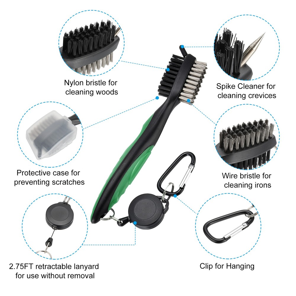 Document The retractable golf club brush is a popular accessory for golf bags, serving as a convenient tool to effectively remove dirt, grass, and debris from the club's grooves. It is an essential cleaning tool that all golf players require in order to fully enjoy their game.SpecificationColor: YellowMaterial: Metal, Nylon, PlasticOverall Length: 19 cm / 7.5 inchRetractable Zip-line: 84cm / 27.5 ftBristle Size: 4.1x1.2cm / 1.6x0.47 inch(LxH)Clip Size: 4.7x2.6cm / 1.85x1.02 inch(LxW)Package Content: 1 x Golf Club BrushAdvantageDouble sided head design, the brass wire bristles used for cleaning metals surface while the nylon bristles used for cleaning woods surface.Compact in size, with a clip for easy attachment to your golf bag, the brush allows you to have it readily available whenever you need to clean the grooves on your golf clubs.The brush can be used not only for cleaning the grooves of golf clubs but also for other golf accessories like golf shoes, golf bags, and more.The cleaning tip effectively cleans the grooves and comes with a protective cover to prevent scratching.InstructionHang it on your golf bag, the built-in retractable cord allows you to use the brush without having to take it off.NotePlease clean the golf club cleaning brush promptly after use. Golf Club Brush with 2.75 Ft Retractable Cord, Golf Club Cleaner Green The retractable golf club brush is a popular accessory for golf bags, serving as a convenient tool to effectively remove dirt, grass, and debris from the club's grooves. It is an essential cleaning tool that all golf players require in order to fully enjoy their game. Specification Color: Yellow Material: Metal, Nylon, Plastic Overall Length: 19 cm / 7.5 inch Retractable Zip-line: 84cm / 27.5 ft Bristle Size: 4.1x1.2cm / 1.6x0.47 inch(LxH) Clip Size: 4.7x2.6cm / 1.85x1.02 inch(LxW) Package Content: 1 x Golf Club Brush Advantage Double sided head design, the brass wire bristles used for cleaning metals surface while the nylon bristles used for cleaning woods surface. Compact in size, with a clip for easy attachment to your golf bag, the brush allows you to have it readily available whenever you need to clean the grooves on your golf clubs. The brush can be used not only for cleaning the grooves of golf clubs but also for other golf accessories like golf shoes, golf bags, and more. The cleaning tip effectively cleans the grooves and comes with a protective cover to prevent scratching. Instruction Hang it on your golf bag, the built-in retractable cord allows you to use the brush without having to take it off. Note Please clean the golf club cleaning brush promptly after use. Hot Item Payment 1.We accept eBay payment . 2.Payment must be received within 7 business days of auction closing. Shipping 1.We ship to your eBay or Paypal address. Please make sure your eBay and Paypal address is correct before you pay. 2.Items will be shipped within 1-3 business day when we received payment. 3.Delivery time depends on destination and other factors. Description Policy Golf Club Brush with 2.75 Ft Retractable Cord, Golf Club Cleaner Green The retractable golf club brush is a popular accessory for golf bags, serving as a convenient tool to effectively remove dirt, grass, and debris from the club's grooves. It is an essential cleaning tool that all golf players require in order to fully enjoy their game. Specification Color: Yellow Material: Metal, Nylon, Plastic Overall Length: 19 cm / 7.5 inch Retractable Zip-line: 84cm / 27.5 ft Bristle Size: 4.1x1.2cm / 1.6x0.47 inch(LxH) Clip Size: 4.7x2.6cm / 1.85x1.02 inch(LxW) Package Content: 1 x Golf Club Brush Advantage Double sided head design, the brass wire bristles used for cleaning metals surface while the nylon bristles used for cleaning woods surface. Compact in size, with a clip for easy attachment to your golf bag, the brush allows you to have it readily available whenever you need to clean the grooves on your golf clubs. The brush can be used not only for cleaning the grooves of golf clubs but also for other golf accessories like golf shoes, golf bags, and more. The cleaning tip effectively cleans the grooves and comes with a protective cover to prevent scratching. Instruction Hang it on your golf bag, the built-in retractable cord allows you to use the brush without having to take it off. Note Please clean the golf club cleaning brush promptly after use. Hot Item Payment 1.We accept eBay payment . 2.Payment must be received within 7 business days of auction closing. Shipping 1.We ship to your eBay or Paypal address. Please make sure your eBay and Paypal address is correct before you pay. 2.Items will be shipped within 1-3 business day when we received payment. 3.Delivery time depends on destination and other factors.