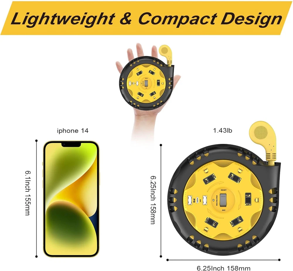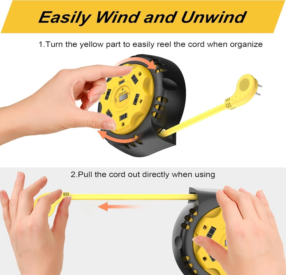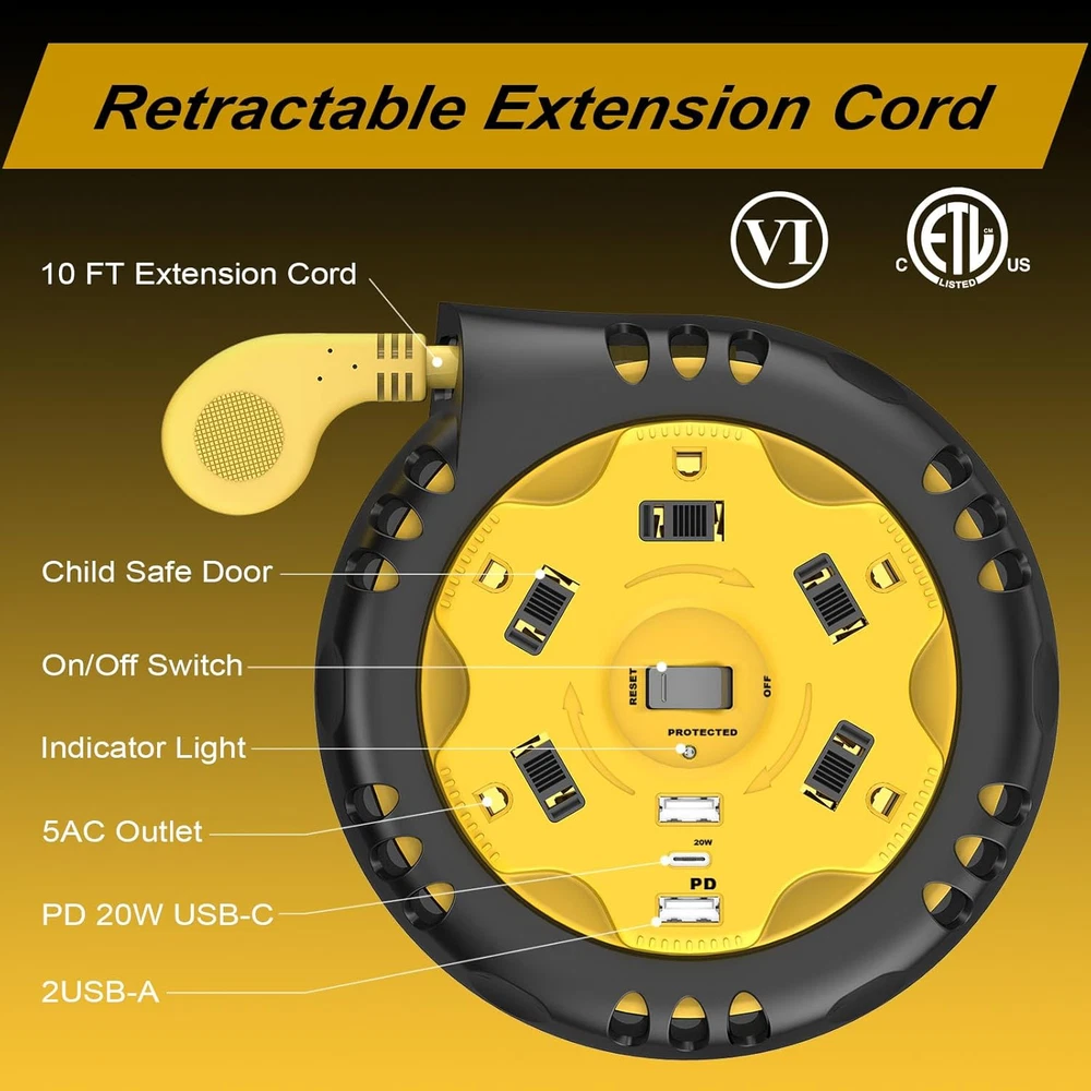 Store New Arrivals Add to Favorite View Feedback Contact Retractable Power Strip Extension Cord Reel with USB C PD 20W, Flat Plug Power Strip Surge Protection with 5 Outlets 3 USB Ports, Retractable Extension Cord 10FT for Home Outdoor Workshop Description Color Yellow Item Weight 1.68 pounds Total Power Outlets 5 Voltage 125 Volts Special Feature On And Off Switch, Surge Protection, Mountable, Retractable Power Strip, PD 20W USBC Package Dimensions 7.44 x 6.97 x 3.15 inches Surge Protection Retractable Power Strip: 5 AC Oulet(1250W,10A 125V 60HZ), 2 USB A Charge Port(15W,5V 3A) With PD 20W USB C(20W,5V 3A/ 9V 2.2A/ 12V 1.67A), USB-A+C combined Max output: 15W 5V 3A. all in one to meet your device charge, very convenient to use on home appliances,kitchens outdoor, Extension Cord Reel With USB: Built-in PD 20W fast charging 1 USB-C and 2 USB-A charging port on the top of the power strip; support charge mobile devices, lamps, laptop and other USB devices 10 FT Durable Extension Cord: Electric cord reel comes with 10 feet long 16/3 gauge SJTW wear and weather resistant extension cord; suitable enough in your small workshop or DIY craft; for indoor/outdoor (dry-location) use only,With surge protectors, they are ideal for indoor-outdoor use. Easily Wind and Unwind:Comes with extension cord winder, this electrical cord reel allows effortless winding and unwinding of the wire; Rotating surface yellow round disc clockwise is supports to wind the power cord easily into electric cord reel and keep the cords neat and tidy for next use. Compact & Easy to Carry: Retractable power Strip Weighs 1.43 lbs only, this handy extension cord wheel is lightweight and portable; Extension outlet can also be used in any indoor-outdoor location where sockets are available,ideal to bring along to caravan, garage, yard, outdoor and recreation areas, provides convenience to your recreation and work. Product Description Features 5 AC outlets, 2-USB A charging ports(15W,5V 3A), 1-PD 20W USB C(20W,5V 3A/ 9V 2.2A/ 12V 1.67A),300 J Surge Protection (power indicator and on/off switch) . This compact and lightweight 10 FT extension cord reel has been designed and engineered for tangle-free and easy rewinding. The rolling up mechanism is smooth,I'd advise to get one if you want to use it for home appliances. Worked great for camping trip,Plenty of outlets for fan, charging station, etc. Compact and lightweight design,you can carry it when you operate machines. 1 FOR HOME APPLIANCES 2 FOR OUTDOOR PARTY 3 FOR WORKSHOP INDUSTRY Retractable Power Strip Heavy Duty Extension Cord Reel with PD 20W USB C Built-in PD 20W fast charging 1 USB-C and 2 USB-A charging port on the top of the power strip; support charge mobile devices, lamps, laptop and other USB devices Right Angle Flat Plug Power Strip Flat plug power strip doesn’t block the bottom receptacle. The flat plug features a low profile fits easily in tight spaces like behind furniture, bookshelves, desks,which can maximum save your outlet space occupied The 45-degree right-angled flat plug makes it easily to plug in and out behind the furniture, and won't block the bottom receptacle of your duplex wall outlet and frees up the receptacles for other uses. Retractable Extension Cord Reel More Details Ergonomic Design Ergonomic design , four fingers behind the back, Let you pick up more easily and comfortably》 Child-resistant Safety Perfectly designed Safety Shutter Protects Children & Pets from the Electric Shock Surge Protector Surge protector power strip offers 300 joules of surge protection, which can effectively protect your equipment from lightning, spikes. Hanging Hole This stores away nicely when done. It can hanging anywhere. Can it be used outdoors? Yes, but please make sure to use it in a dry environment.This product is not waterproof so please avoid rain, water splashes, and humid environments during use. It comes with a 10 feet cord, suitable for use in garden, workshop, jobsite etc. Does this Retractable Cord Reel have ETL listed? YES ,it is have ETL listed ABOUT US We offer the best prices around on high quality products. Our E-store includes media such as books, movies, music and games while offering electronics, toys, sporting apparel, clothing, tools, general home, garden items and more. SHIPPING We are always working hard to ensure your package arrives as soon as possible. Please understand that some factors like weather, high postal traffic, and the performance of shipping companies are outside of our control. We offer free shipping to the lower 48 states and ship within 2 business days of payment, usually sooner. We do not accept P.O. Boxes. Please provide a physical address. For shipping outside of the continental USA, we only use eBay's Global Shipping Program.The item is shipped to KY and then sent to the rest of the world. International customers are responsible for all duties and taxes. Continue to check out in order to calculate costs for shipping the item to your country. Messages regarding eBay's Global Shipping Program MUST be directed at eBay EXCLUSIVELY. RETURNS We offer a 30-Day Return Policy on items which you are not completely satisfied with. You have the option for a full-refund or an exchange of the item. No returns are available on items shipped outside of the USA. PAYMENT We accept PayPal. CONTACT US This page content is yet to come Please ad us to your favorite seller and visit again later Thank You CUSTOMER SATISFACTION We try our very best to make sure every customer is completely satisfied. If there's a problem, message us! We're happy to help. WE ACCEPT Copyright © 2021 AutoDS. | All Rights Reserved