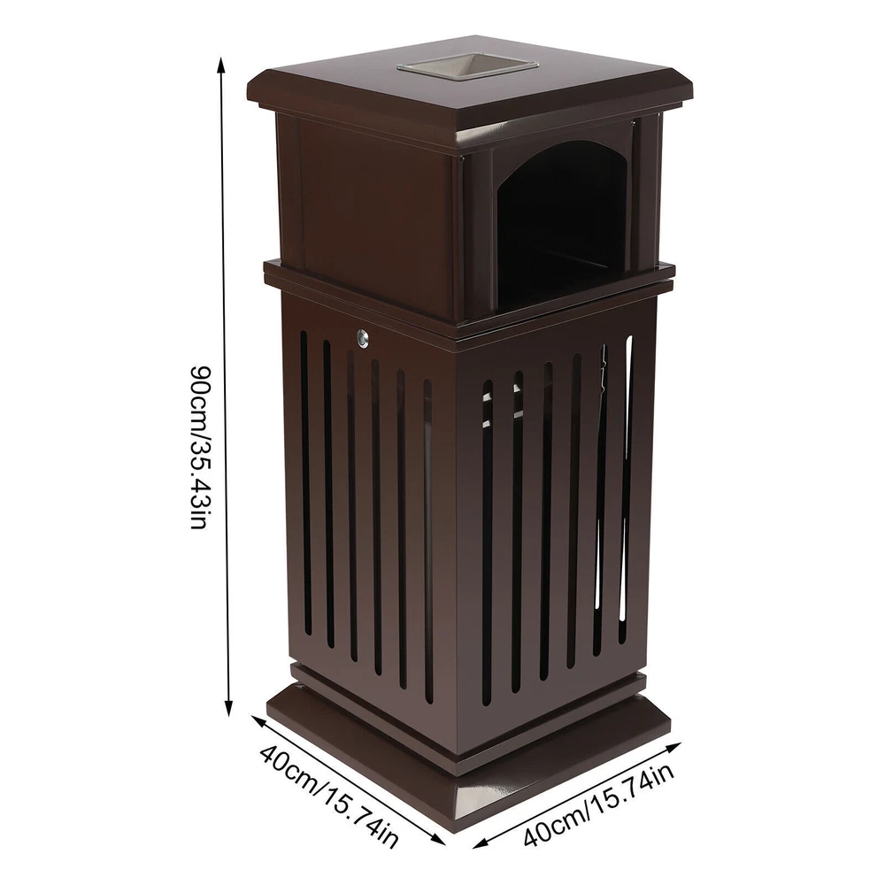 Application It Applies to Indoor or Outdoor Places, Such As Patios, Parks, Lobbies, Shopping Malls, Courtyards, Garages, Offices, Halls, Etc. Specification Material: Galvanized Sheet Color: Brown Process: Spraying Plastics and Baking Paint Style: Modern Shape: Rectangular, Cylindrical Opening Mechanism: Open-top Special Feature: Entrance, Anti-slip Capacity: 40l/8.8gal Gross Weight: 16kg/35.3lbs Net Weight: 15kg/33lbs Package Size: 92*42*42cm/36.22*16.53*16.53in Product Size: 40*40*90cm/15.8*15.8*35.5in Package Included 1*Garbage Can 1*Key 2*Screws Retro 40l Garbage Can Open-top Trash Can Bin Patio Park Courtyard with Flip Lid Description Brown Garbage Can Description An Exquisite and Practical Garbage Can Not Only Helps to Keep the Environment Clean and Fresh but Also Beautifies the Style of the Environment. This Garbage Can Is Made of High-quality Galvanized Sheets and the Exquisite Spraying and Baking Paint Process Can Adapt to Different Indoor and Outdoor Environments to Serve You for a Long Time. Key Features Exquisite Appearance : the Elegant, Antique Brown Surface with Smooth Lines and Hollow Panels Create an Exquisite Appearance, Which Can Add a Classical Style to Parks and Other Venues. High-quality Material : the Surface of a High-quality Galvanized Sheet Is Exquisitely Sprayed and Baked, Which Greatly Enhances Its Ability to Resist Corrosion and Impact, Enabling It to Adapt to Different Outdoor/Indoor Environments. Stable Structure : Thickened and Enlarged Base and Regular Rectangular Structure Provide a Stable Structure for the Product to Improve Wind Resistance . Hands-free Garbage Disposal : the Double-sided Enlarged Arch Opening Design Not Only Facilitates the Disposal of Larger Garbage but Also Allows You to Dispose of Garbage Without Touching the Lid, Which Is More Convenient and Hygienic. Large Capacity : the Large Deep Liner Has a Large Capacity of 8.8 Gallons, Which Makes It Suitable for High-traffic Areas Such As Parks, Schools, or Amusement Parks. It Can Keep the Ground Clean and Trash-free for a Long Time Without Frequent Cleaning. Thoughtful Design : This Floor-standing Garbage Can Is a Versatile Combination of an Ashtray and Trash Receptacle, Not Only Offers Convenient Hands-free Disposal of Cigarettes and Trash at One Location but Also Can Extinguish and Discard Cigarette Butts for Effective Fire Prevention. Stable and Secure : the Lid with Lock Enhances Security to Prevent Theft. for Weather Resistance and to Prevent Vandalism, the Bottom of Weather-resistant Trash Garbage Can Be Fastened with Equipped Screws to the Pavement. Installation-free : the Product Is Shipped As a Whole so It Can Be Used upon Receipt Without Installation, Which Is a Time Saver. Easy to Clean : the Smooth Surface, Simple Structure, and Removable Liner Make It Easy to Clean. You Just Need to Wipe It Gently with a Damp Cloth. Protective Packaging : the Sturdy Cardboard Box Provides Full Protection for the Product to Avoid Damage in Transit. Customer Service : We Aim to Provide Quality Products and Services. If You Have Any Problems, Please Feel Free to Contact Us. We Will Reply and Solve the Problem for You As Soon As Possible. Details Flip Lid : the Top Flip Lid Not Only Prevents Rain and Snow from Entering but Also Makes It Easy to Clean up the Garbage. Carrying Handles : the Two Carrying Handles of the Inner Liner Not Only Facilitate Movement but Also Prevent Hands from Directly Touching the Garbage. Round Edges : the Round Edges Can Protect Hands from Scratches. Detail Display Excellent Quality Stable Structure Secure Application It Applies to Indoor or Outdoor Places, Such As Patios, Parks, Lobbies, Shopping Malls, Courtyards, Garages, Offices, Halls, Etc. Specification Material: Galvanized Sheet Color: Brown Process: Spraying Plastics and Baking Paint Style: Modern Shape: Rectangular, Cylindrical Opening Mechanism: Open-top Special Feature: Entrance, Anti-slip Capacity: 40l/8.8gal Gross Weight: 16kg/35.3lbs Net Weight: 15kg/33lbs Package Size: 92*42*42cm/36.22*16.53*16.53in Product Size: 40*40*90cm/15.8*15.8*35.5in Package Included 1*Garbage Can 1*Key 2*Screws Notes For Safety, Please Completely Extinguish the Cigarette Before Putting It into the Ashtray. Please Allow the Slight Color Difference Caused by the Shooting Light and 1-3cm Error Due to Manual Measurement. Please Make Sure You Do Not Mind Before You Order. Payment Delivery details Terms of sales About us Contact us Payment We accept ebay payment 。 Fees such as import duties, taxes are not included in the item price or shipping costs. These charges are the buyer's responsibility. Delivery details Shipping: 2-9 working days to: USA Terms of sales We maintain high standards of excellence and strive for hundred percent customer satisfaction. Feedback is very important to us. We hope that you contact us immediately before you give neutral or negative feedback, so that we can address your concerns. It is impossible to address issues if we do not know about them! About us Your satis faction is our ultimate goal. We work hard to earn your trust and future business. Our certified technicians have tested each item before shipping. The unit comes with 1 year limited warranty on all manufacturing defects. a) If you receive a defective item, you may return it or ask for a discount. Please contact us within 14 days after you receive the package. b) What you returned must be intact and in its original packaging as re? u. Customer is responsible for shipping costs of the returned item. c) We will cover the cost of shipping back t with the shipping rate indicated in the registration page. We will send you a new unit or refund the full payment you paid. Thank you. Contact us Business Hour Business Hour: Monday To Friday: 8:30 AM to 5:00 PM (Beijing China time) Due to time zones, our reply to your questions may not be immediately. But within above working time, we will reply your email within 24 hours. If it's non-workdays, please kindly b