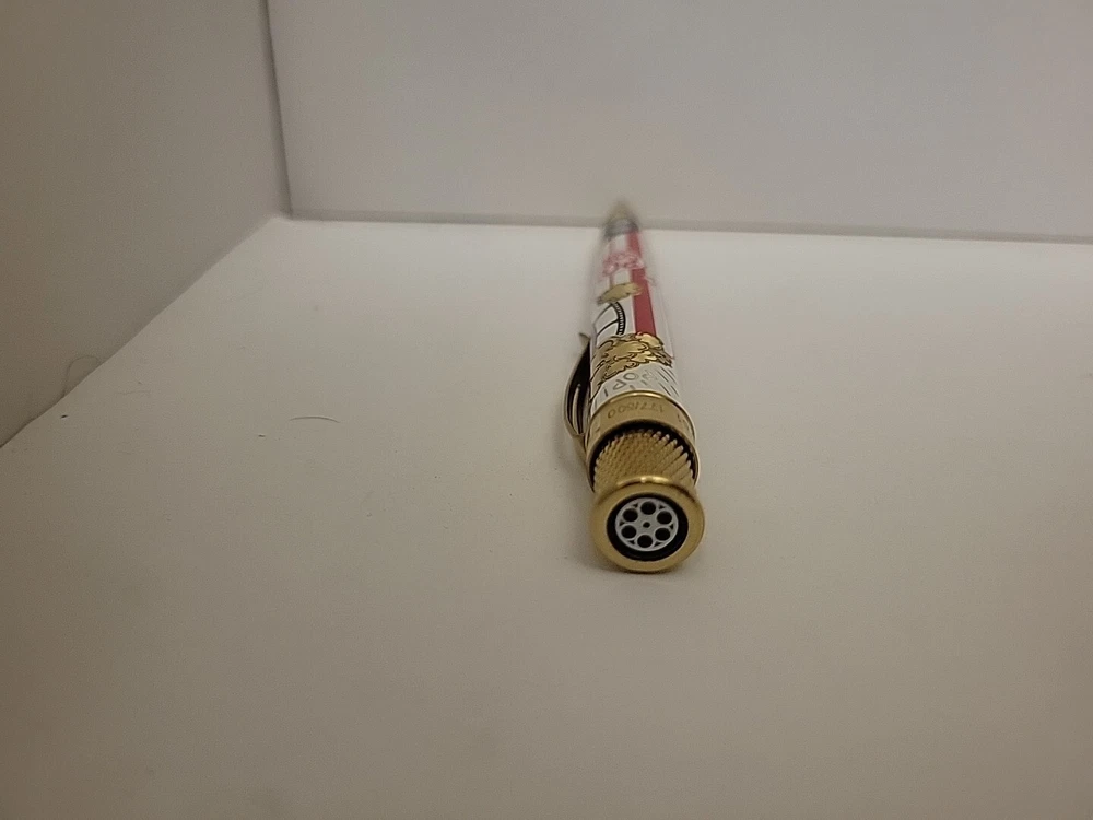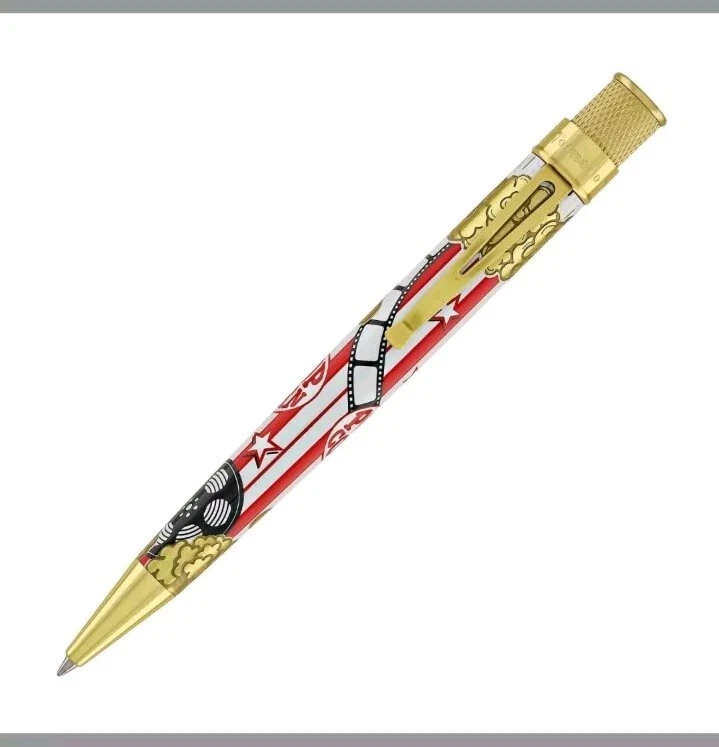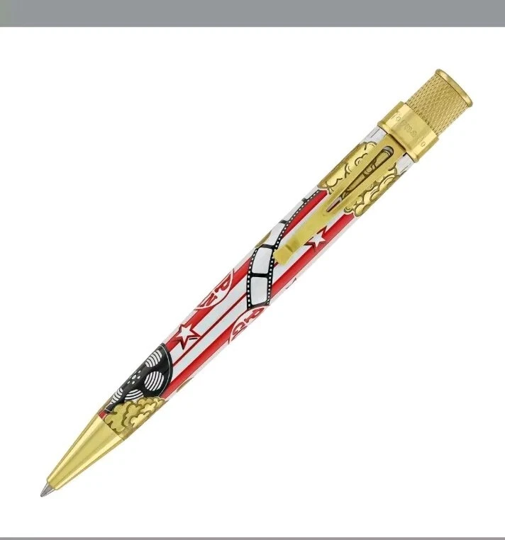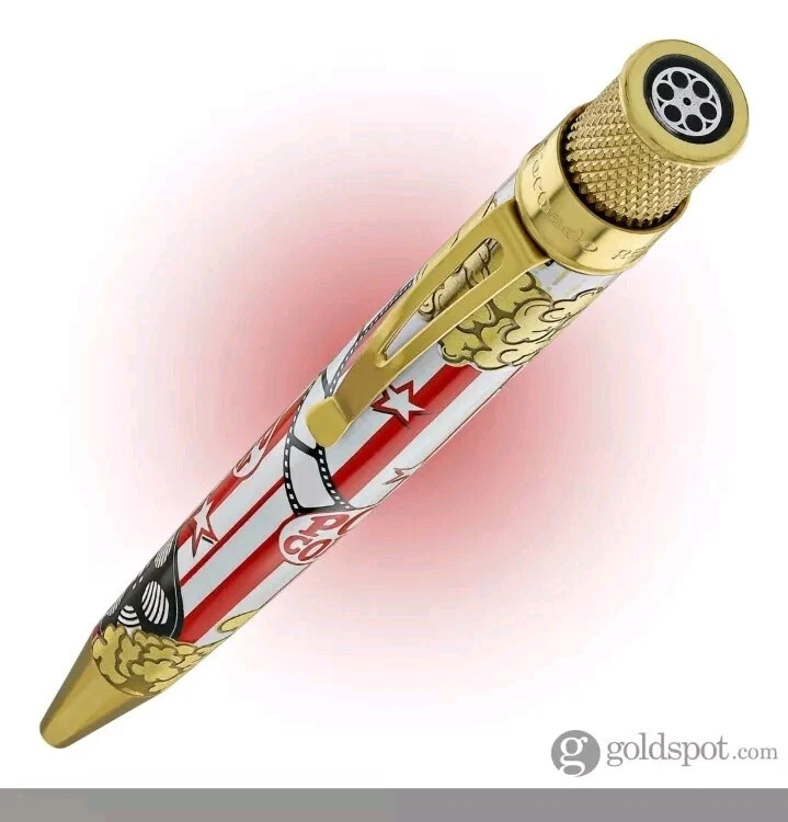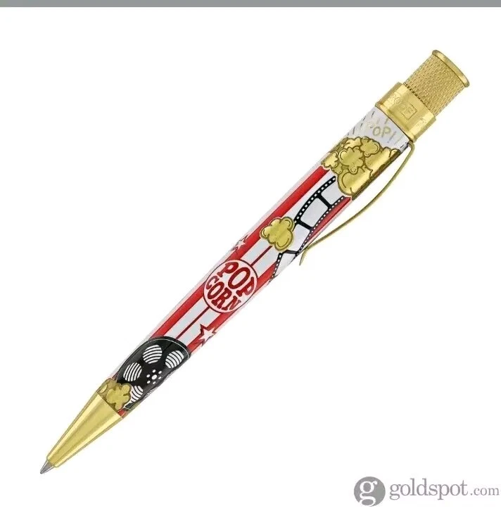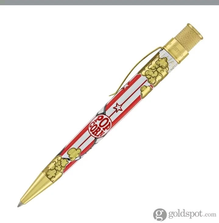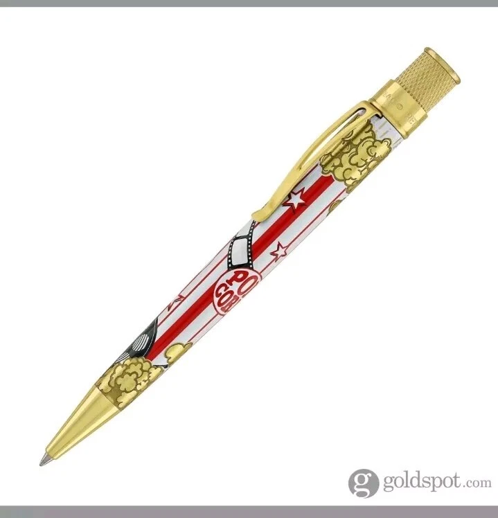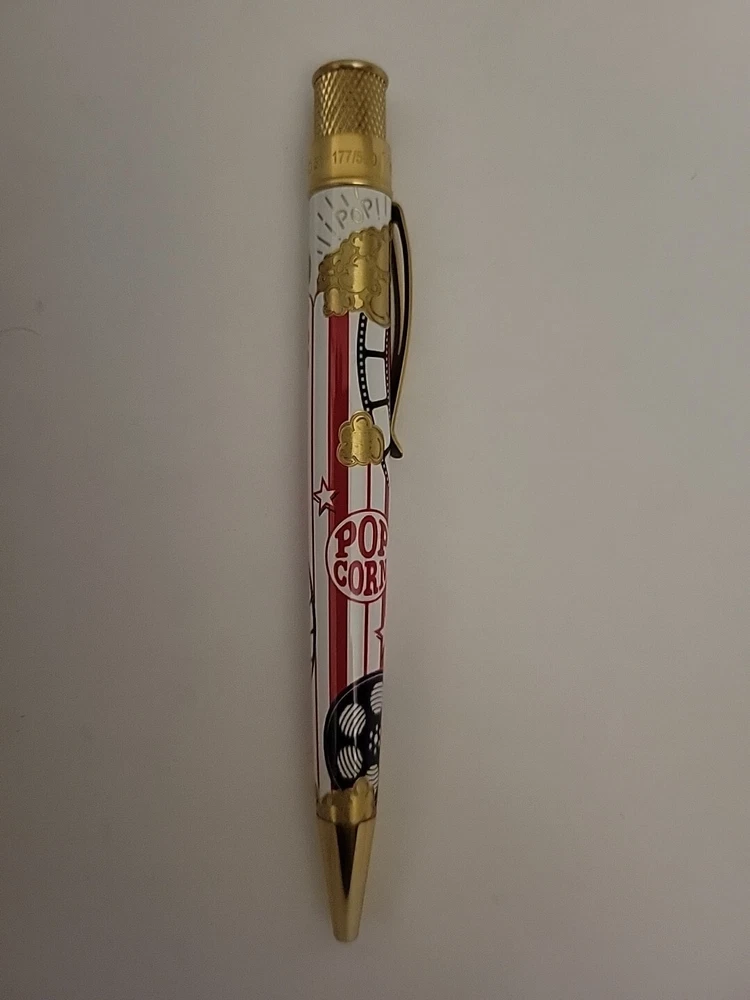 Sealed, new in box. Numbered: #177 Pictures are from the goldspot website and actual item for sale. From a collectors inventory. No marks or blemishes. Goldspot description: Goldspot - Movie Night Rollerball SKU ZRR-2331 It’s Movie Night! Walk the red carpet with Retro51 and Goldspot to celebrate the premiere of this new pen. Whether you watch in the movie theatre or stream movies at home, this new Goldspot Design Your Own Tornado Art Contest winner by Alice Manners will be the star of your collection. With a talented cast highlighted by the leading performer, the acid-etched popcorn, and the colors serving as support, this ensemble brings a new flavor to your collection. Buttery, salty, or cheesy this rollerball brings the magic of the silver screen to your writing experience. Curl up with a blanket, popcorn, drink, and a notebook to write you own story. Craft your acceptance speech, knowing you won’t be played off the stage, with this new movie themed pen.