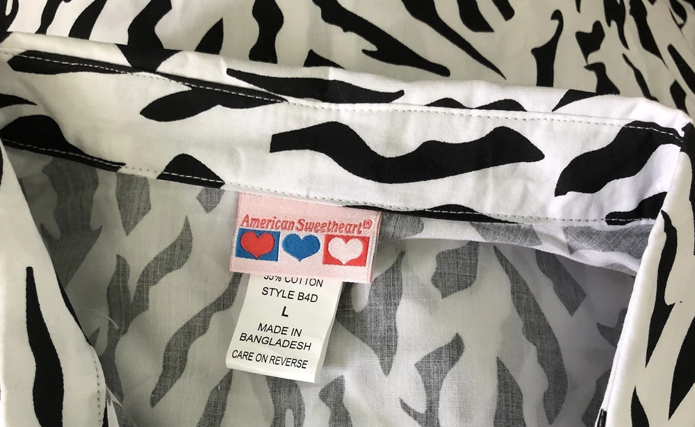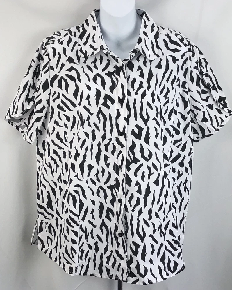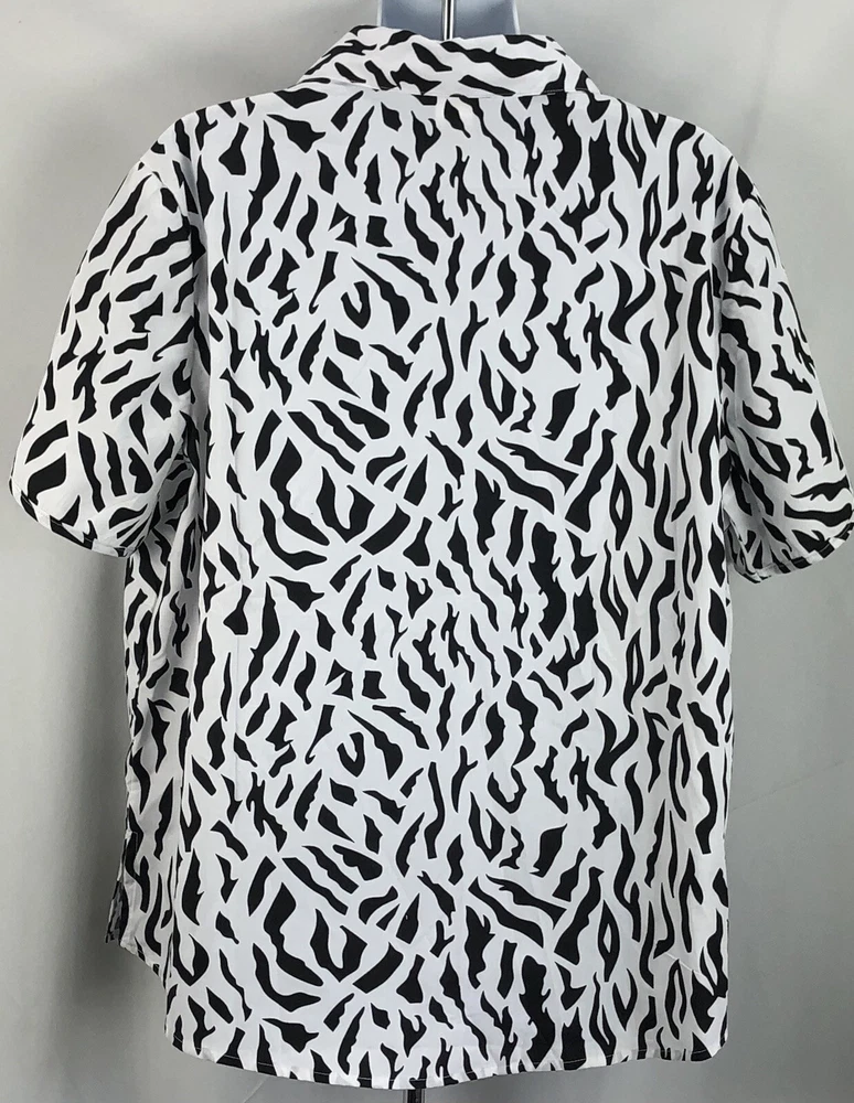 Retro 80's Top Blouse L Wht/Blk Geo Animal Print Button Up Shortsleeve Chest 44 " Length 25 " Excellent Fashion Gem Fast shipping , same or next business day with tracking number for confirmation Thank you Questions? Please let me know I answer questions promptly Have a great day! WalkupandDeal offers great deals on previously loved items....... We inspect each garment for any flaws the item may have: missing buttons,holes,spots,tears or pilling. Our suppliers are carefully selected, so we only offer items that are in Great with minimal wear ,excellent,nearly new or New with tags condition. Information on each item can be found in the "item specifics" tab, including: Size, measurements,fabric content and care instructions. Our faculty is a non smoking environment and each item is laundered & steamed prior to listing and shipping. We strive for every customer to be happy with their items and as always offer a "return for any reason" policy...... ..... Thank you for shopping with us!!!