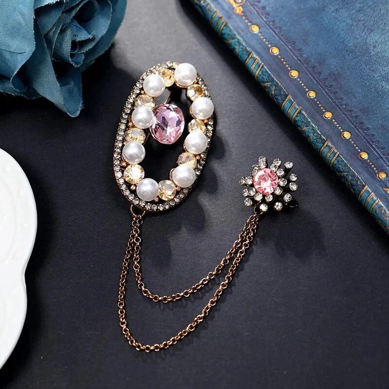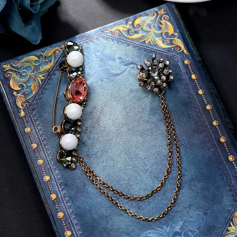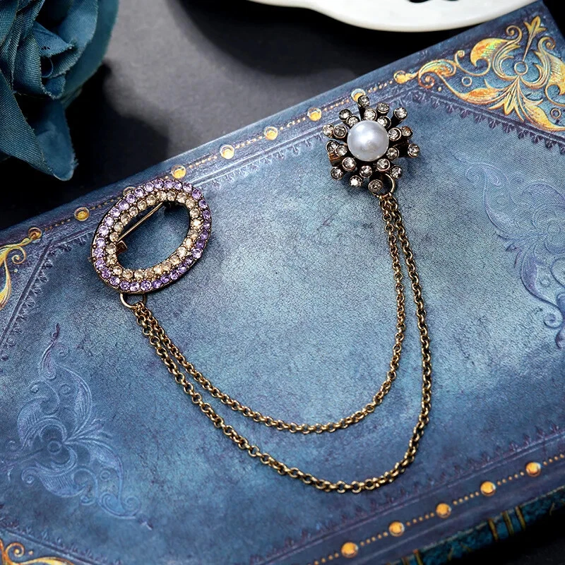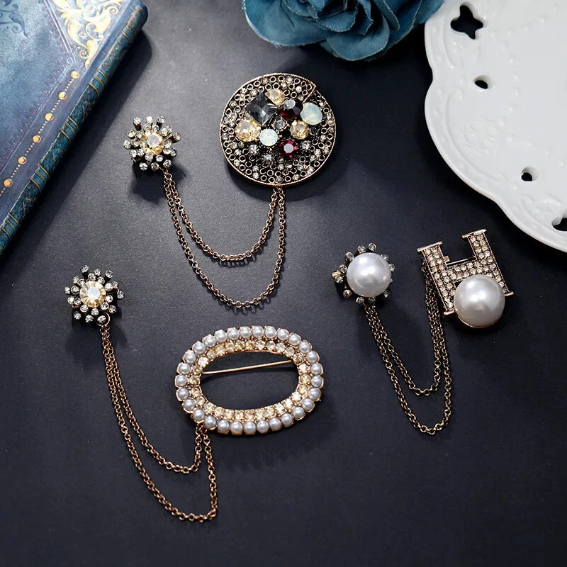 Retro British Style Chain Tassel Brooch Suits Wild Pins Accessories Jewelry