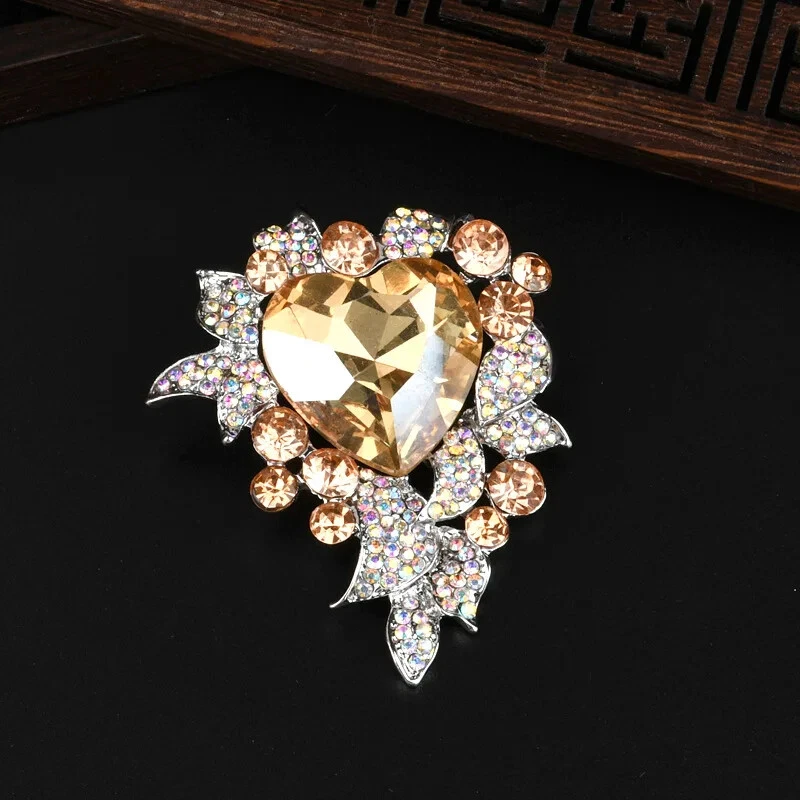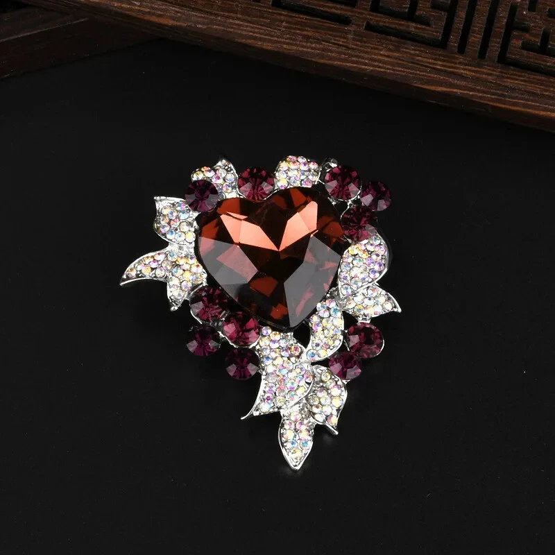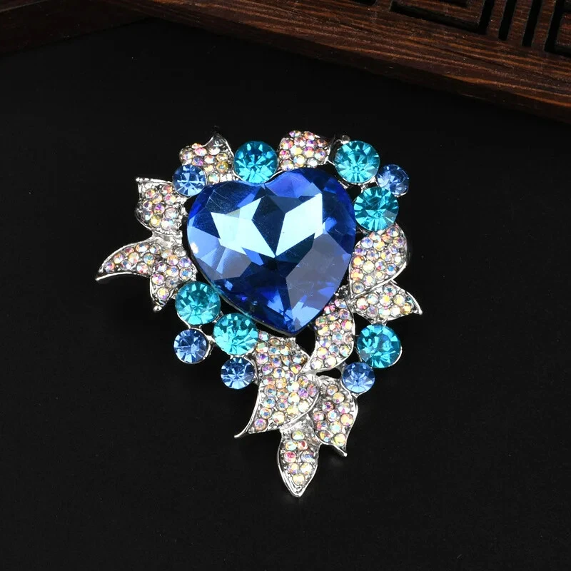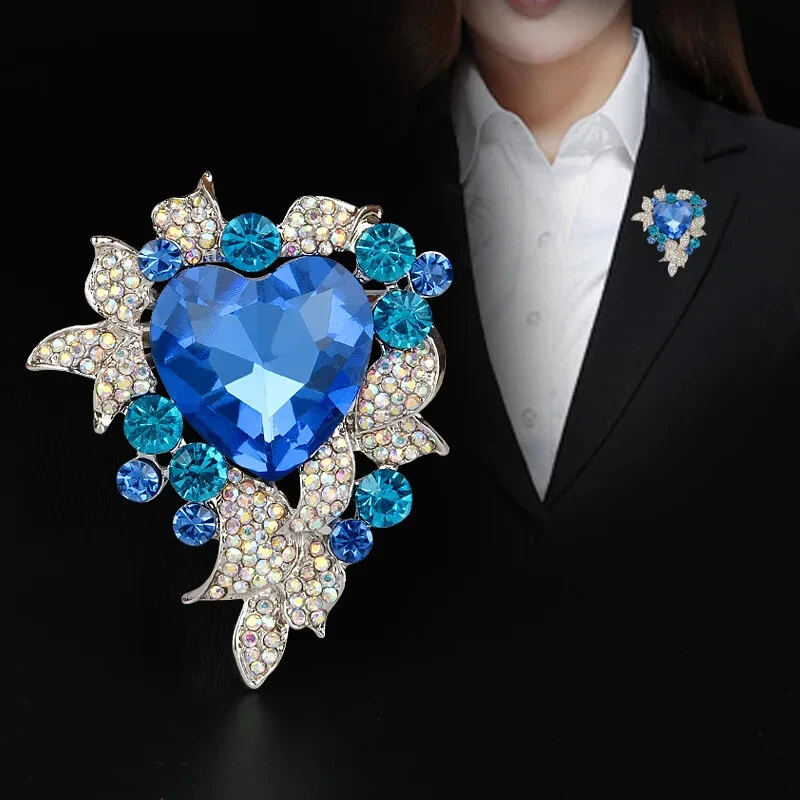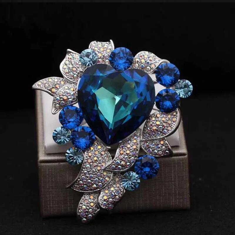 Retro Crystal Brooch High-end Corsage Female Heart Ocean Accessories Suit Pin