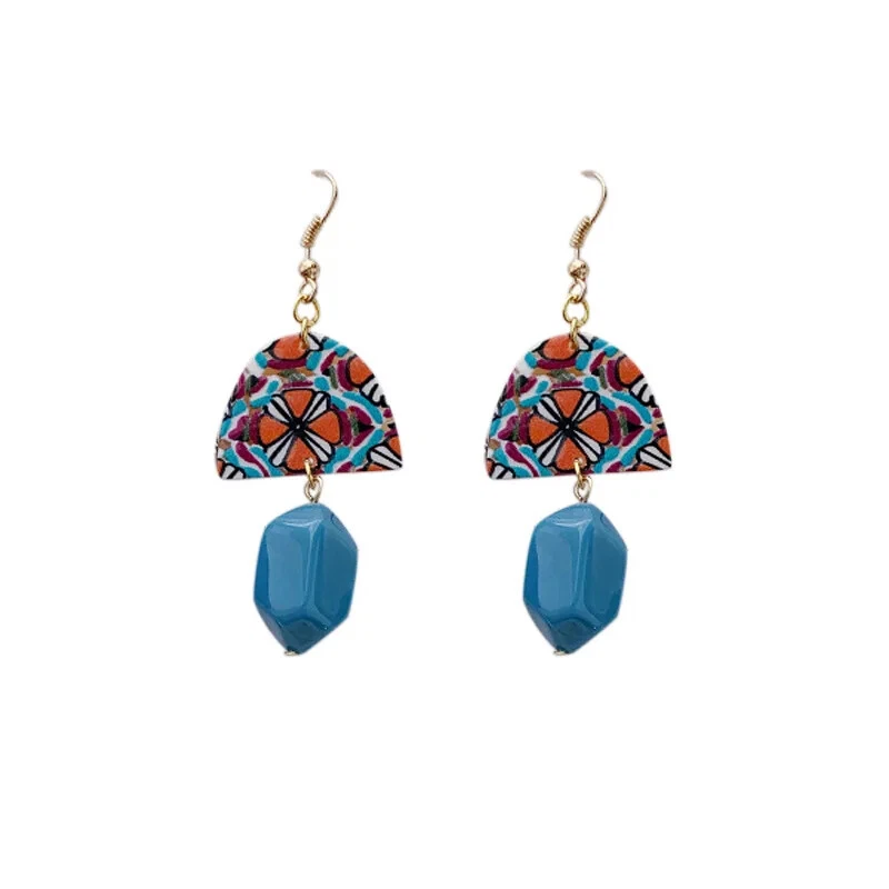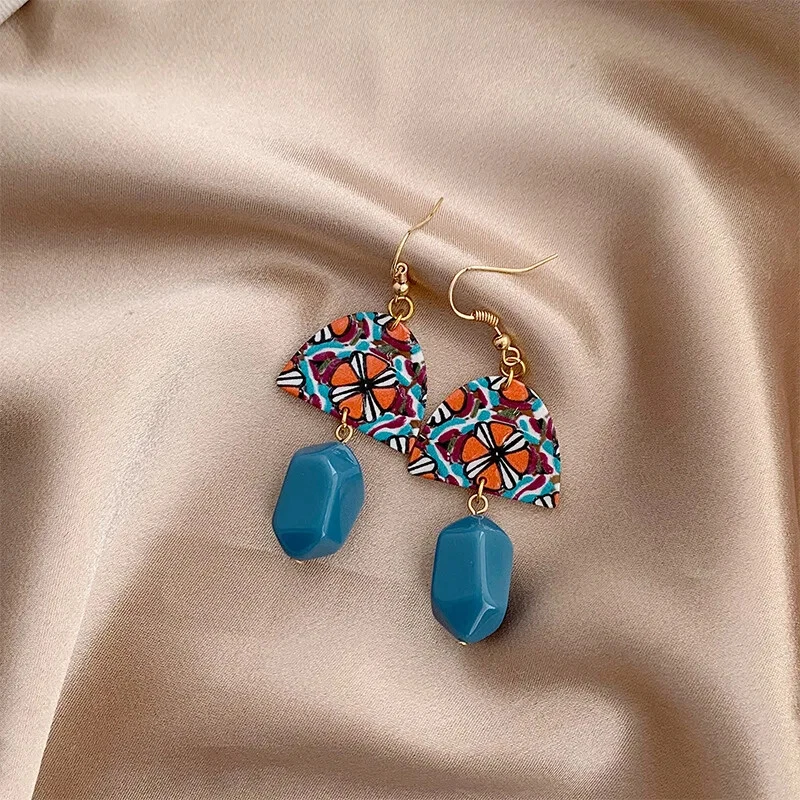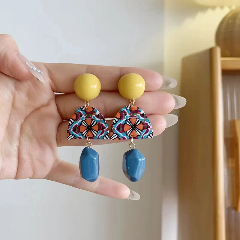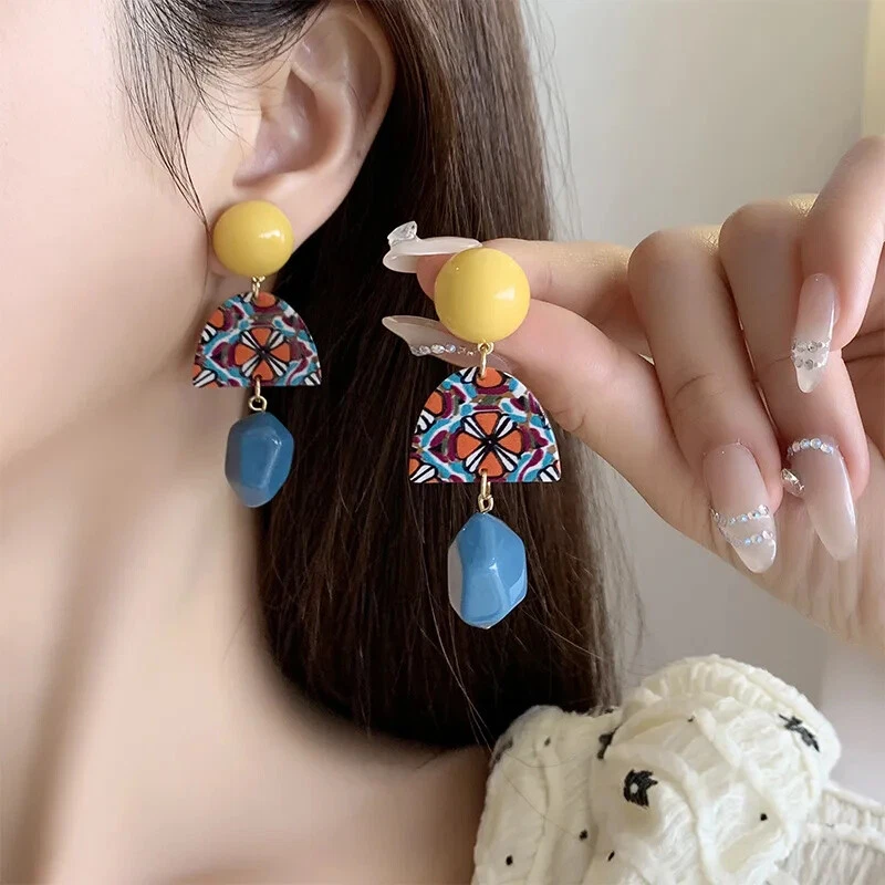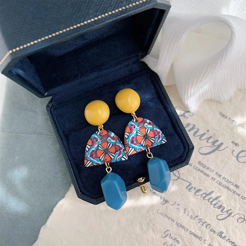 Retro French Exaggerated Earrings Niche Design Blue Contrast Color Suitable For